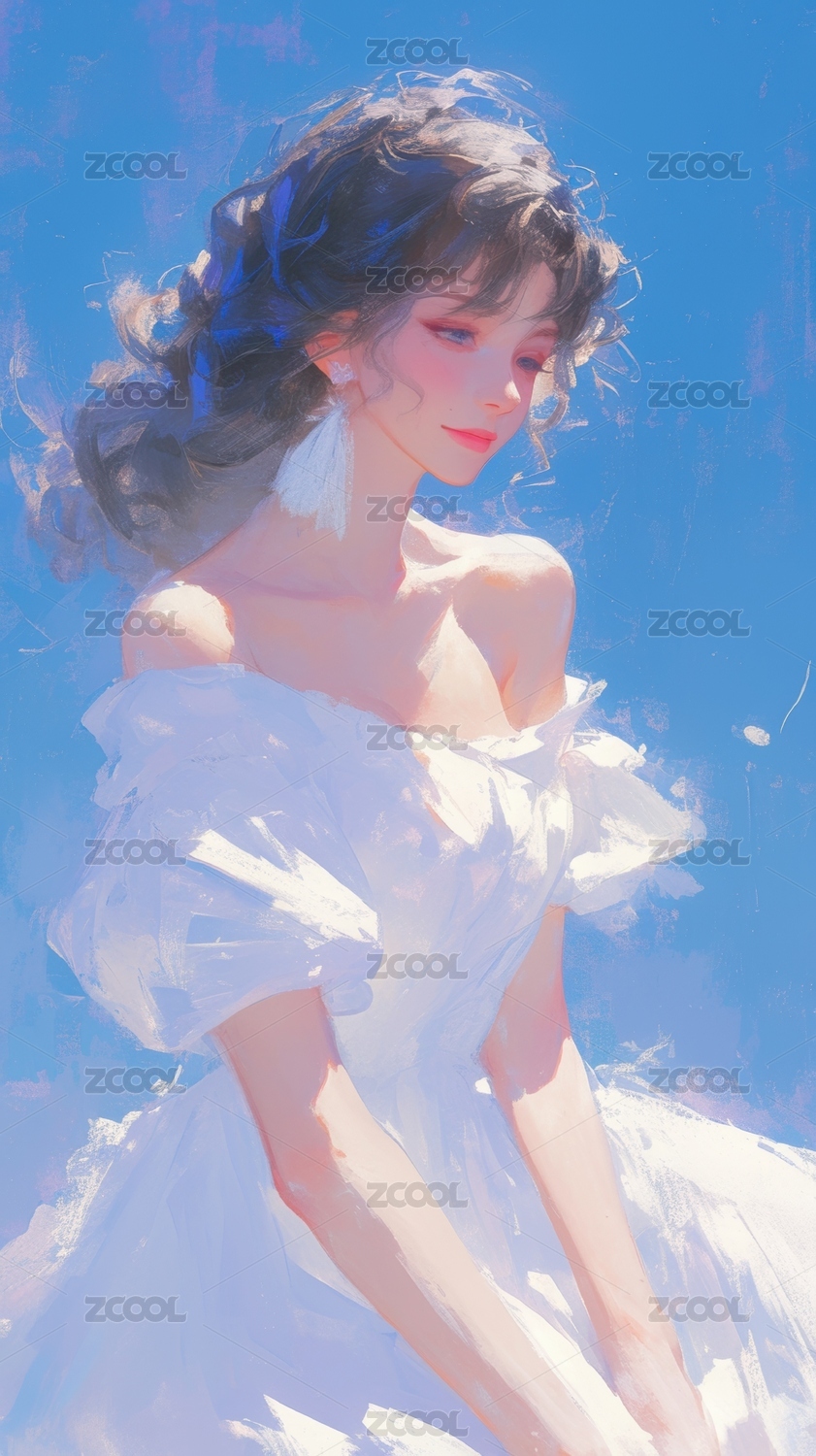 女孩,雨伞,白色,裙子,红色,星星,黑色,背景,飞扬,头发