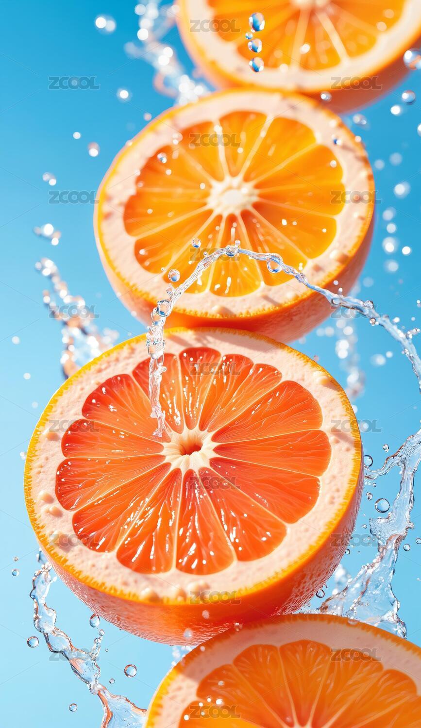 背景,动态,阳光,蓝色,飞舞,橙色,水果,切片,飞溅,清爽