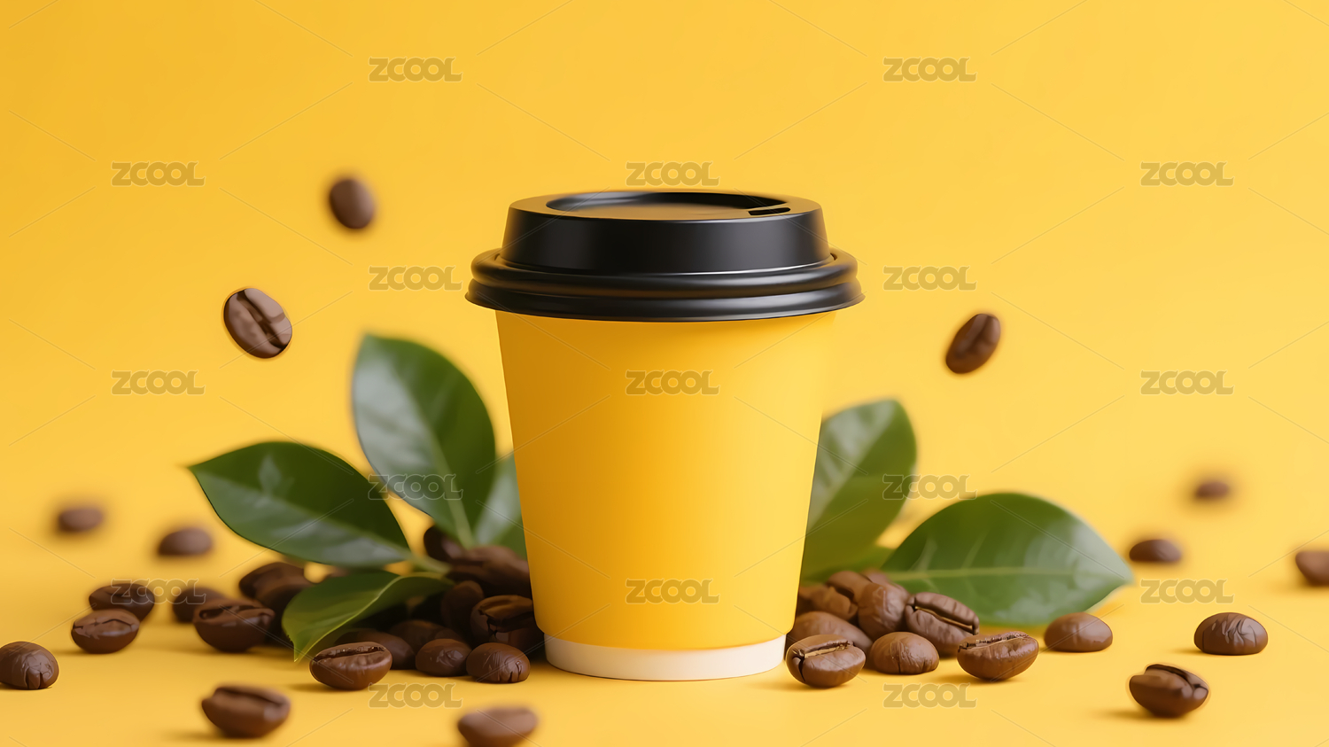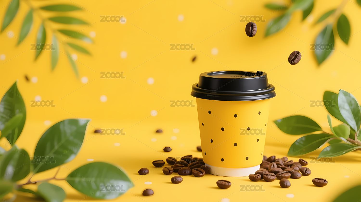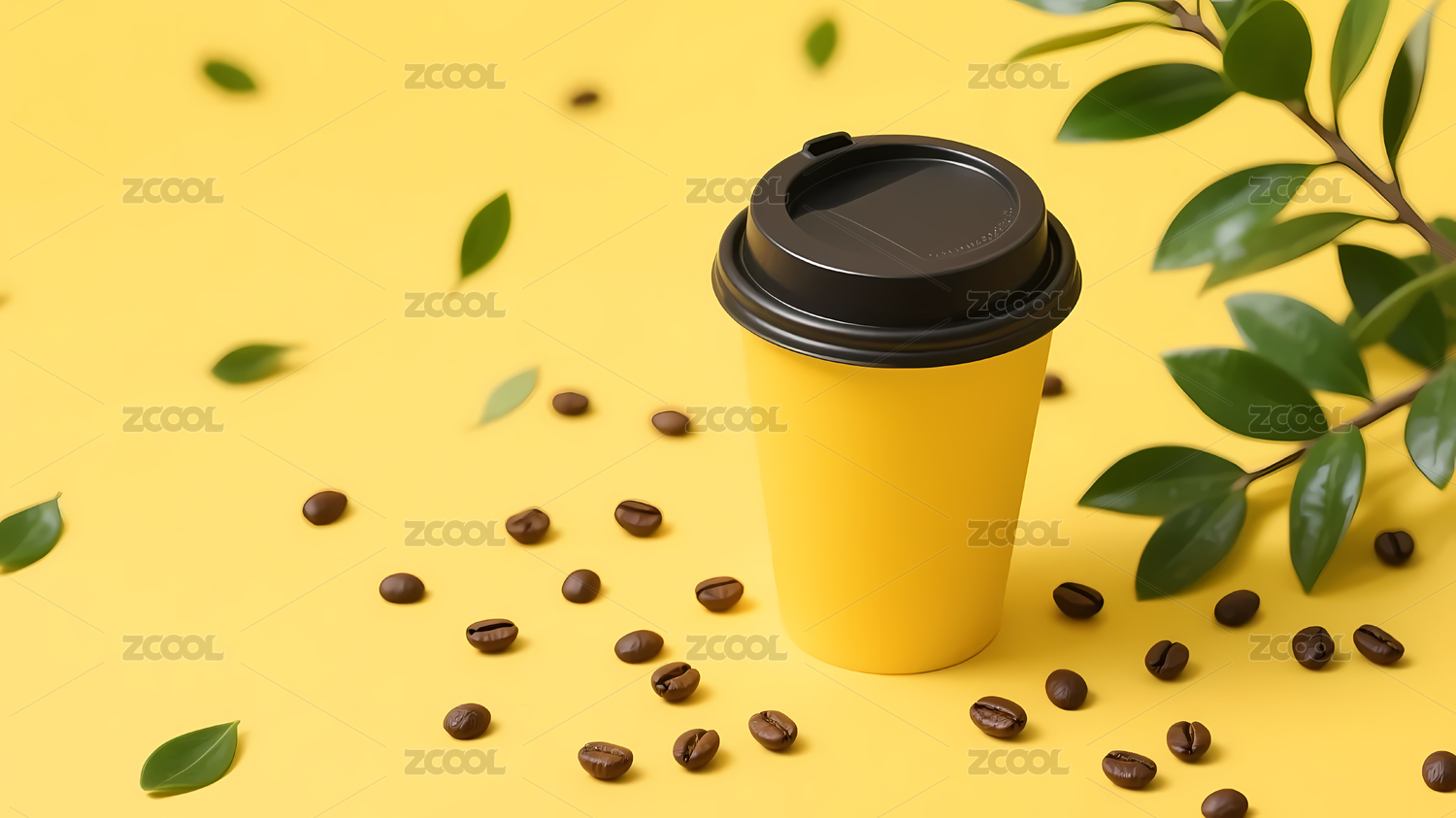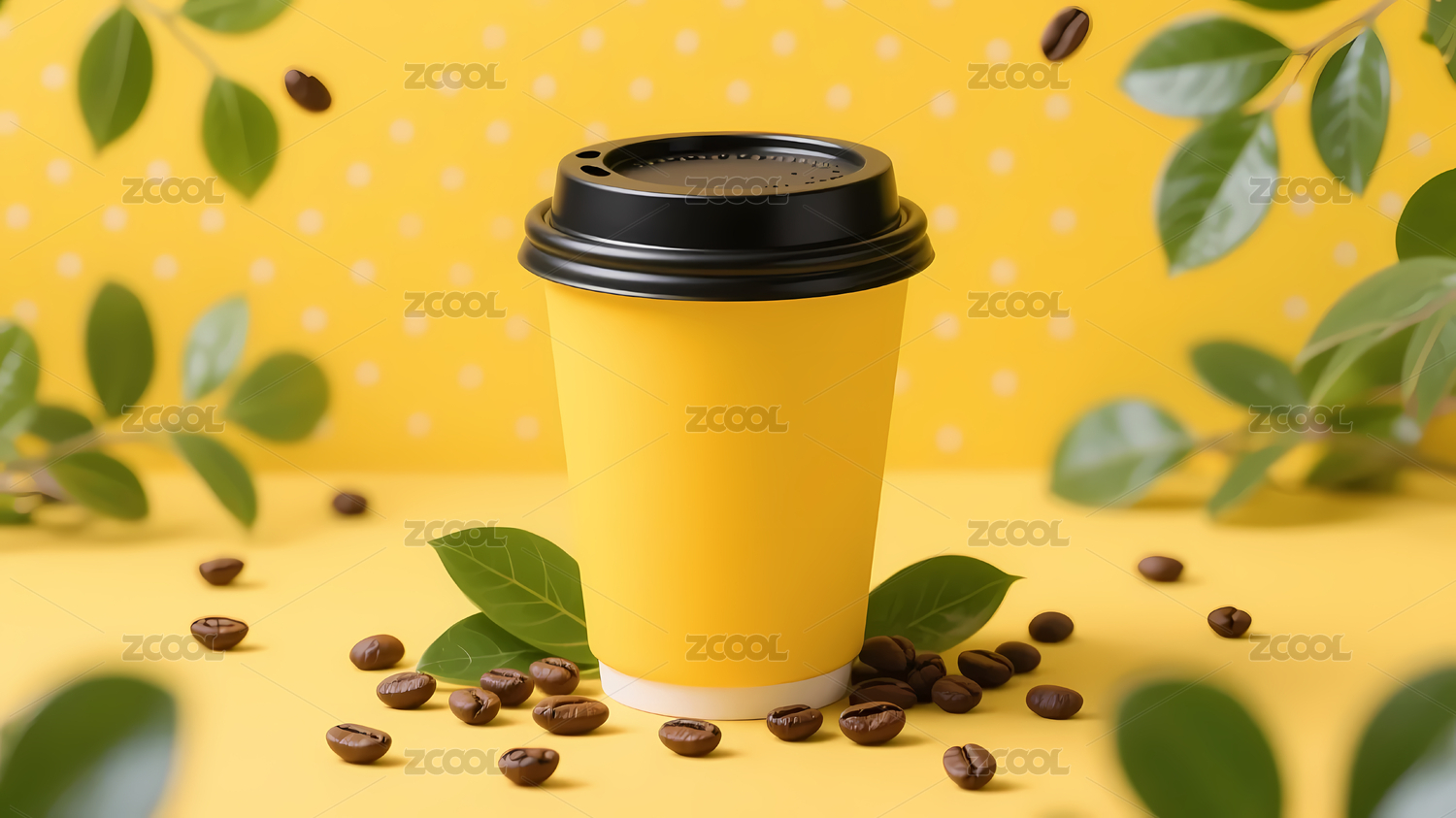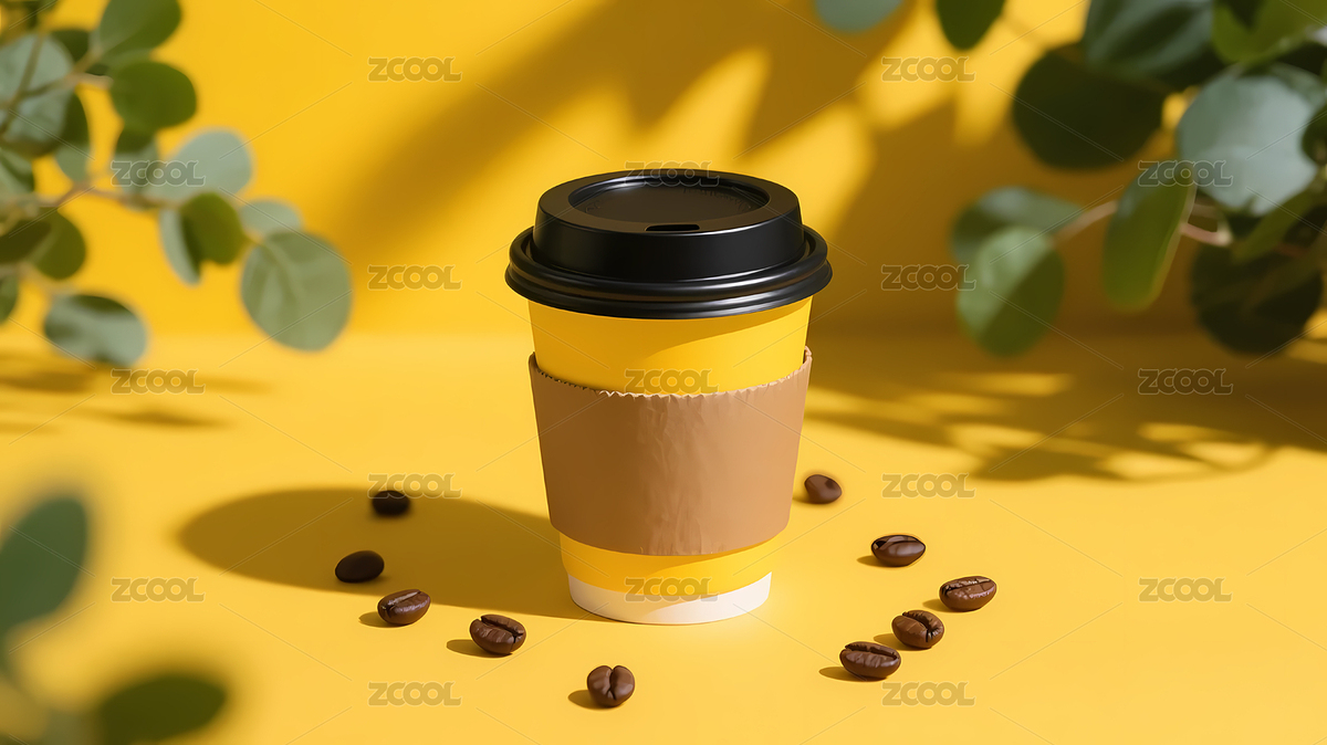 背景,黄色,绿色,棕色,黑色,温馨,阴影,咖啡,纸杯,豆子