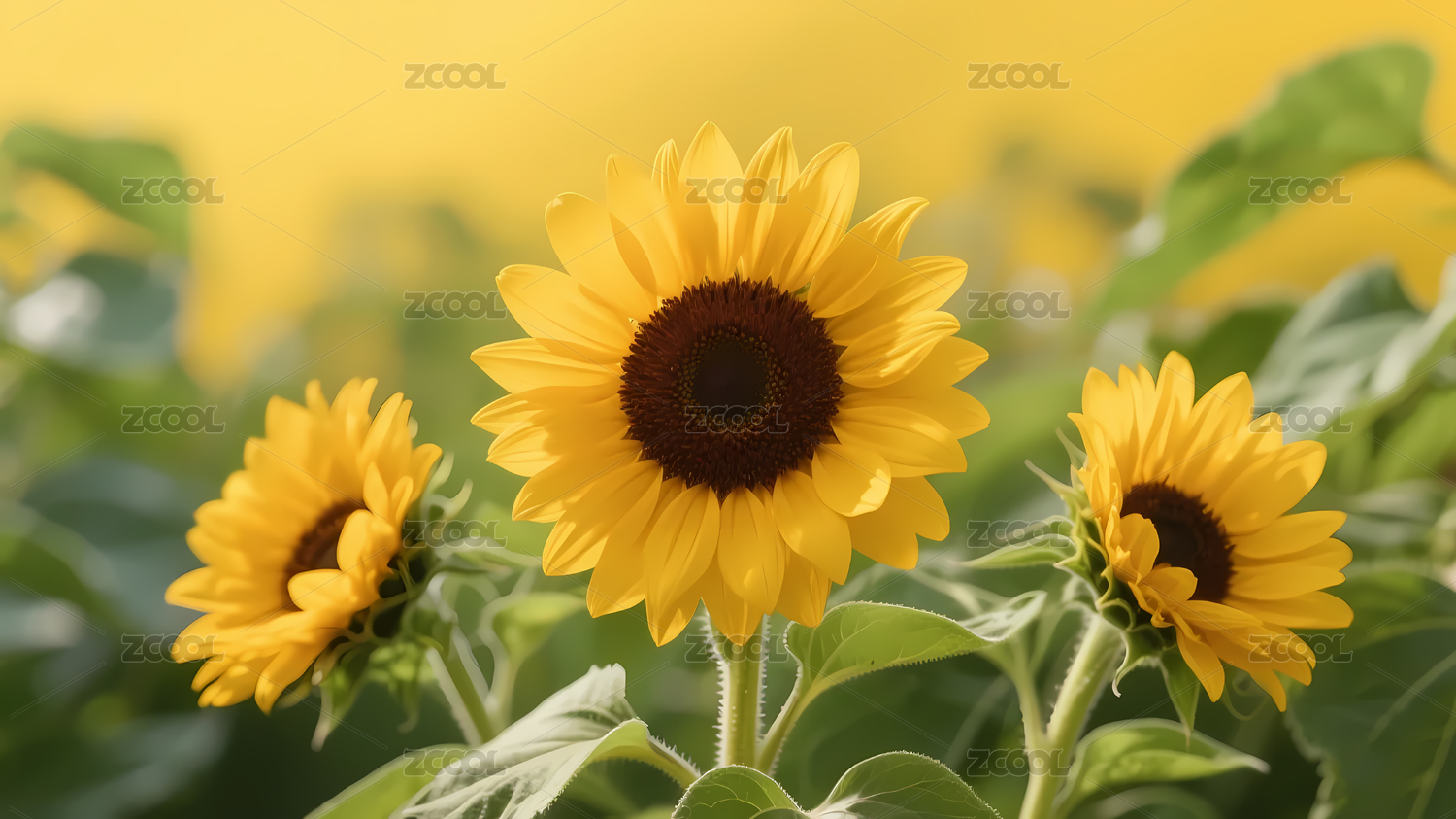 背景,自然,黄色,绿色,温暖,向日葵,花盘,叶子,生机,明亮