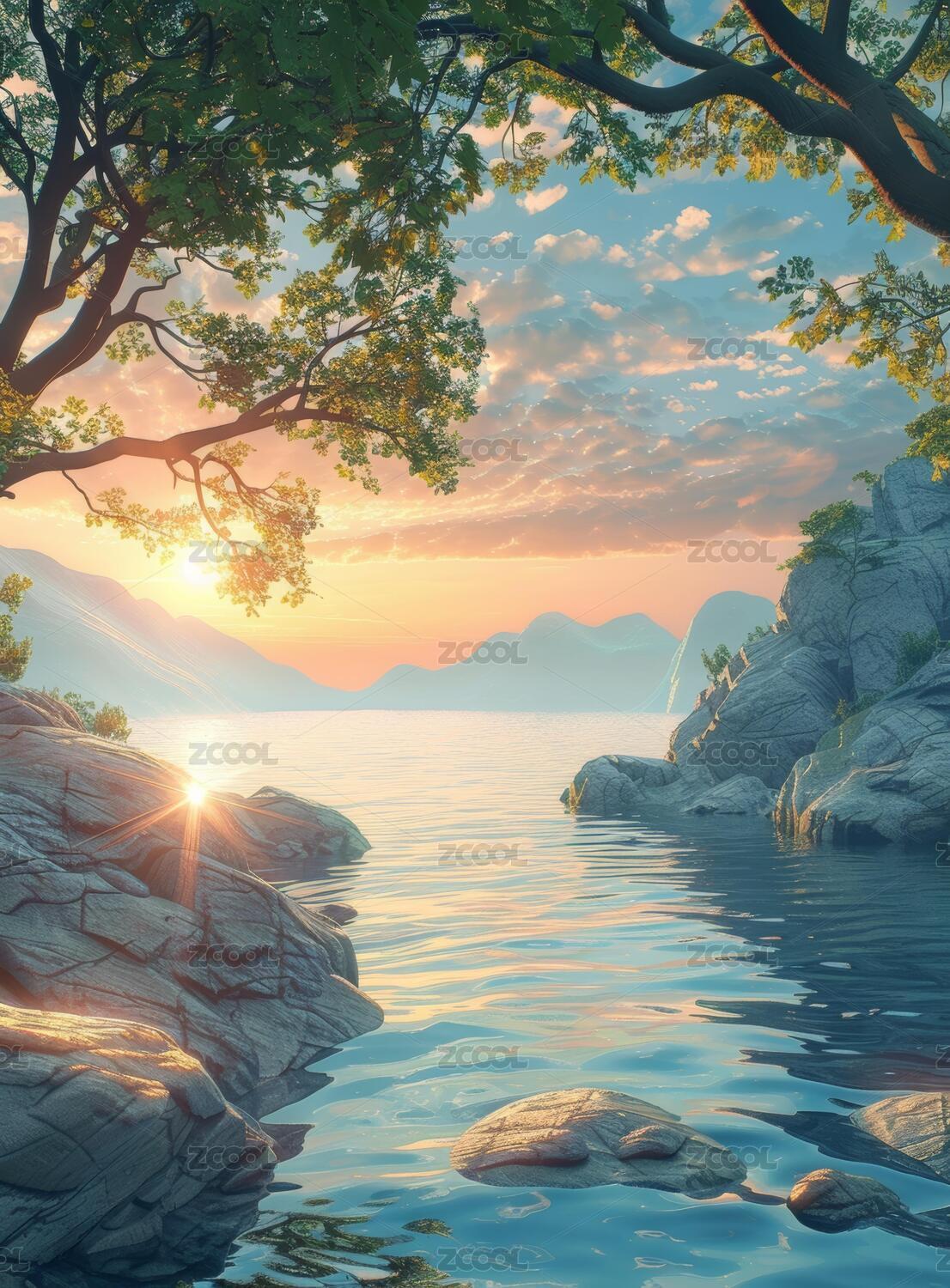 壮观,海滩,夏天,宁静,安宁,度假,放松,绿植,僻静,撤退