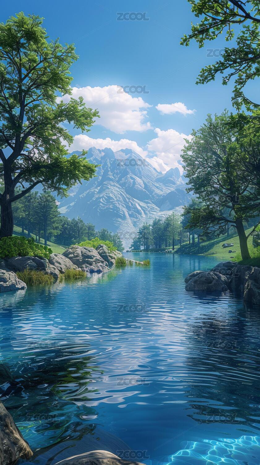 碧水映衬翠色欲滴的山谷河水清澈见底