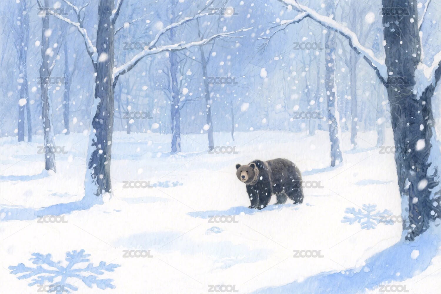 自然,背景,动物,雪花,森林,站立,熊,雪地,冬季,寒冷