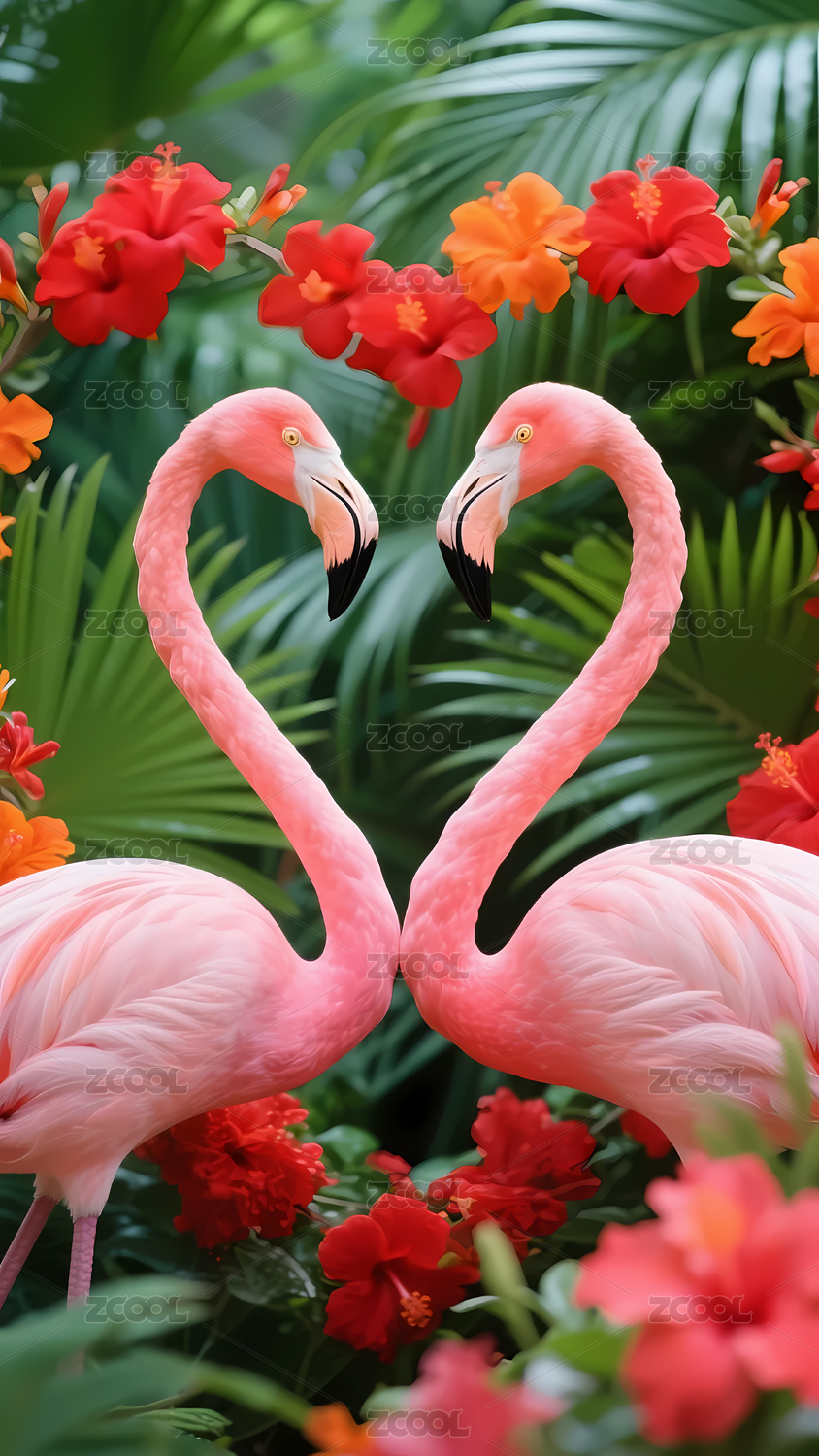 火烈鸟,粉红,植物,花朵,热带,优雅,自然,动物,绿色,红色