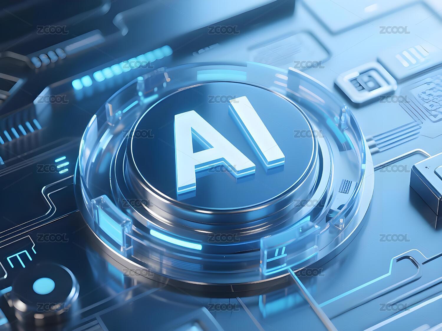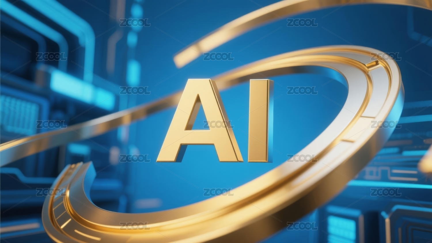 蓝色发光AI字样环绕光环