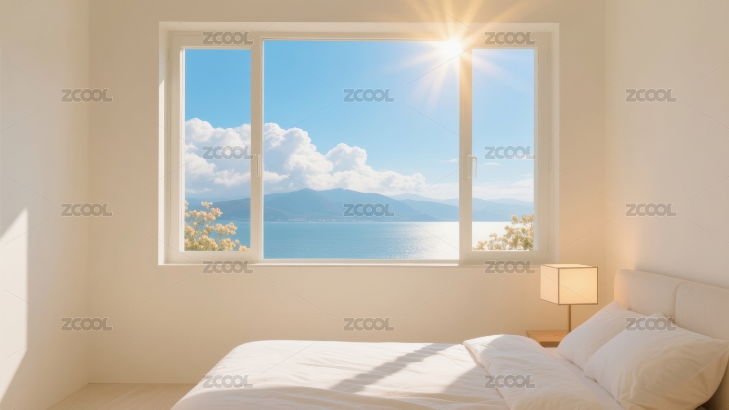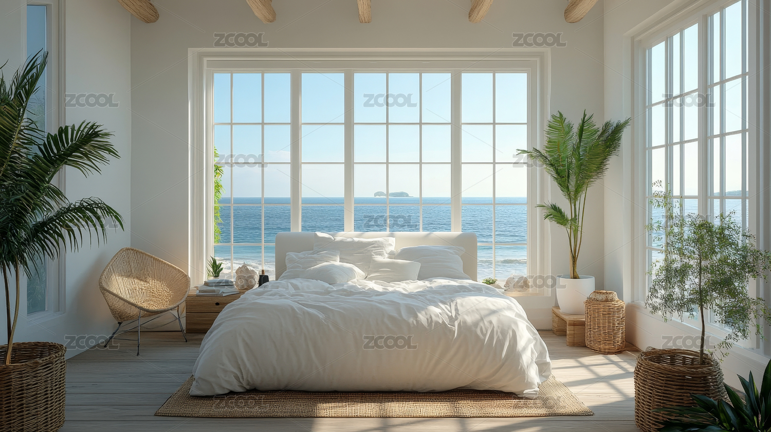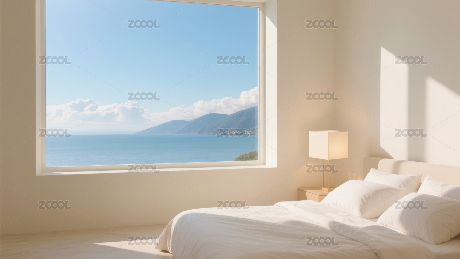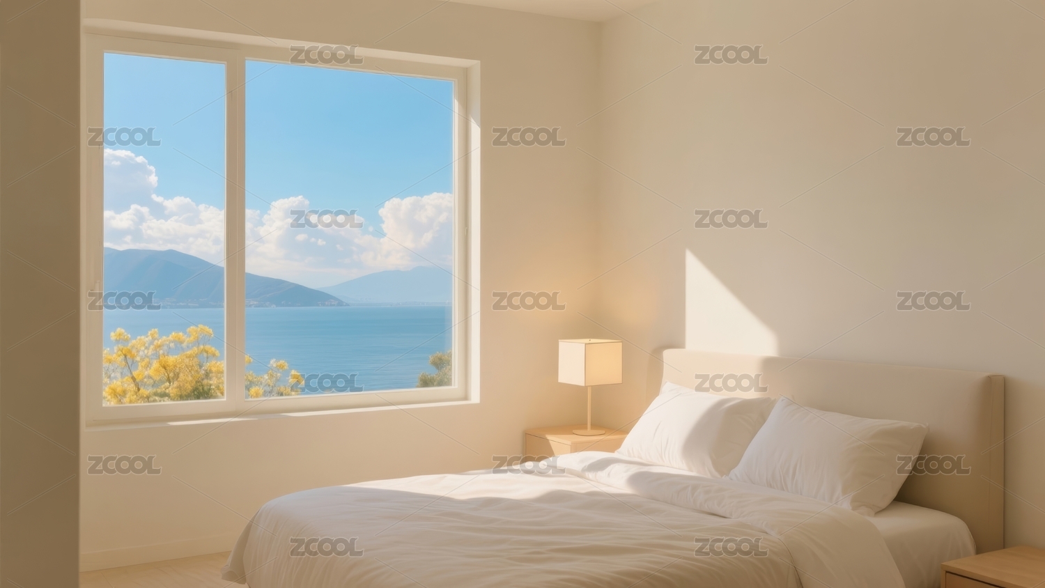 宁静,装饰,卧室,床,窗户,米色,舒适,温暖,简洁,家居