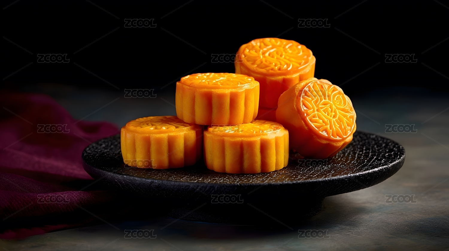 月饼,传统,节日,糕点,桌面,食物,中秋,黑色,背景,深色