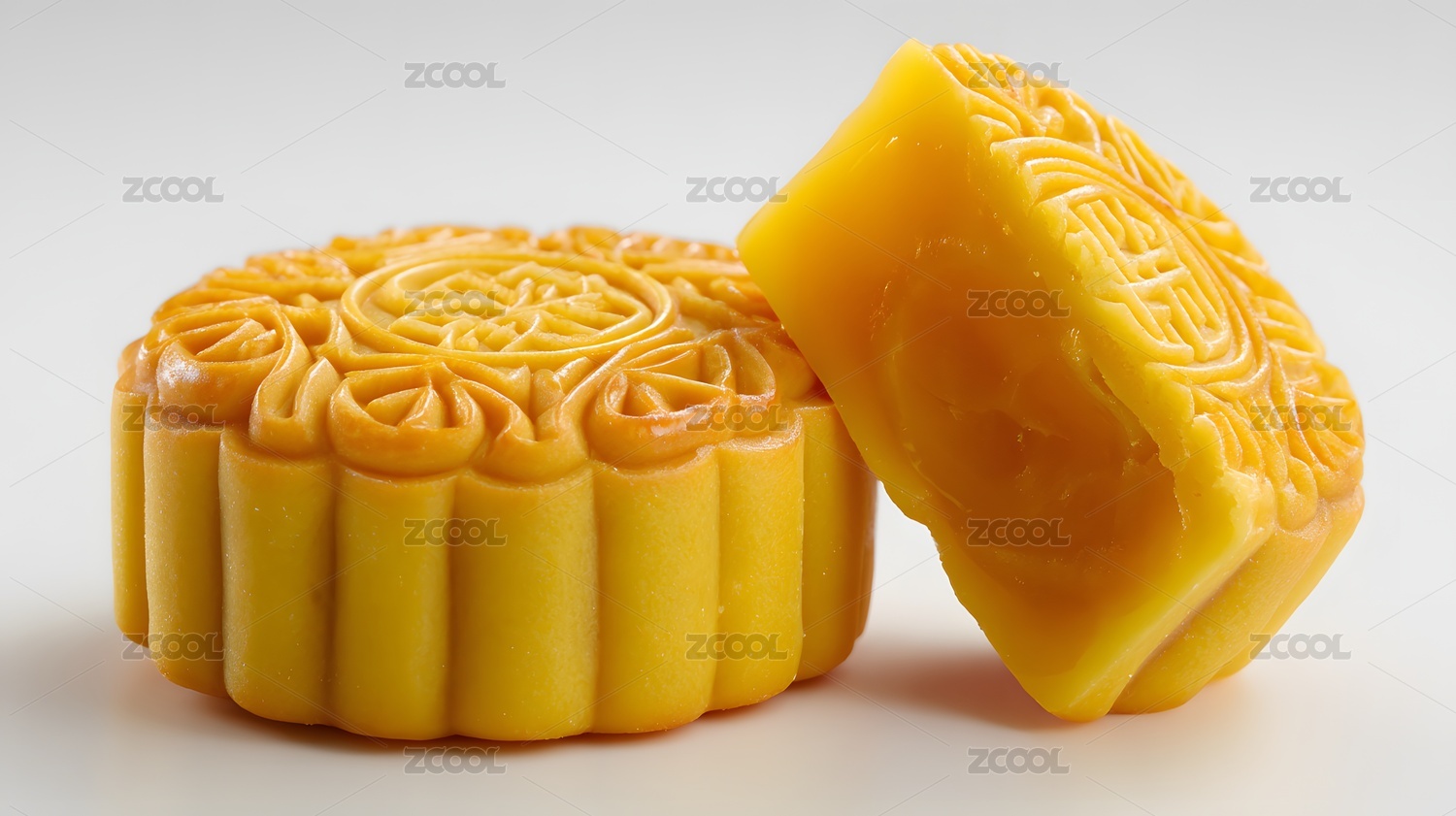 中秋传统花纹月饼切开露馅3D中秋节插画