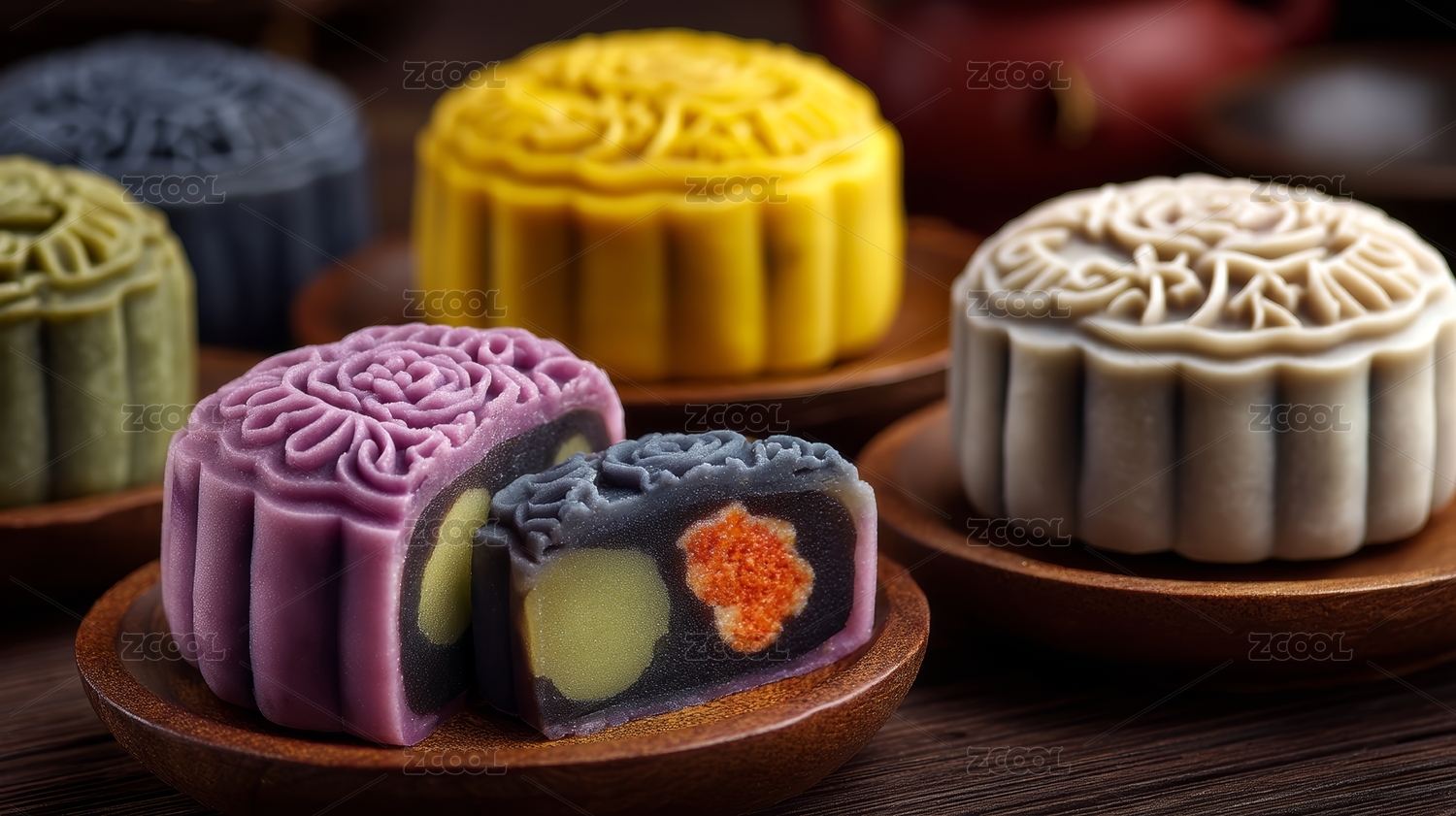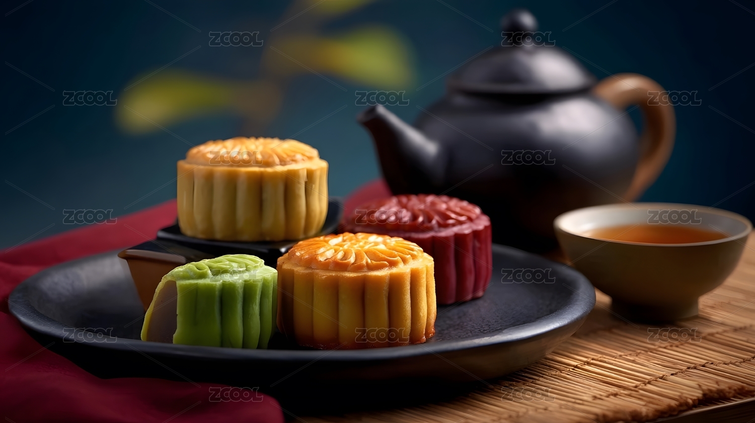 月饼,传统,节日,糕点,点心,食品,黄色,桌面,黑色,背景