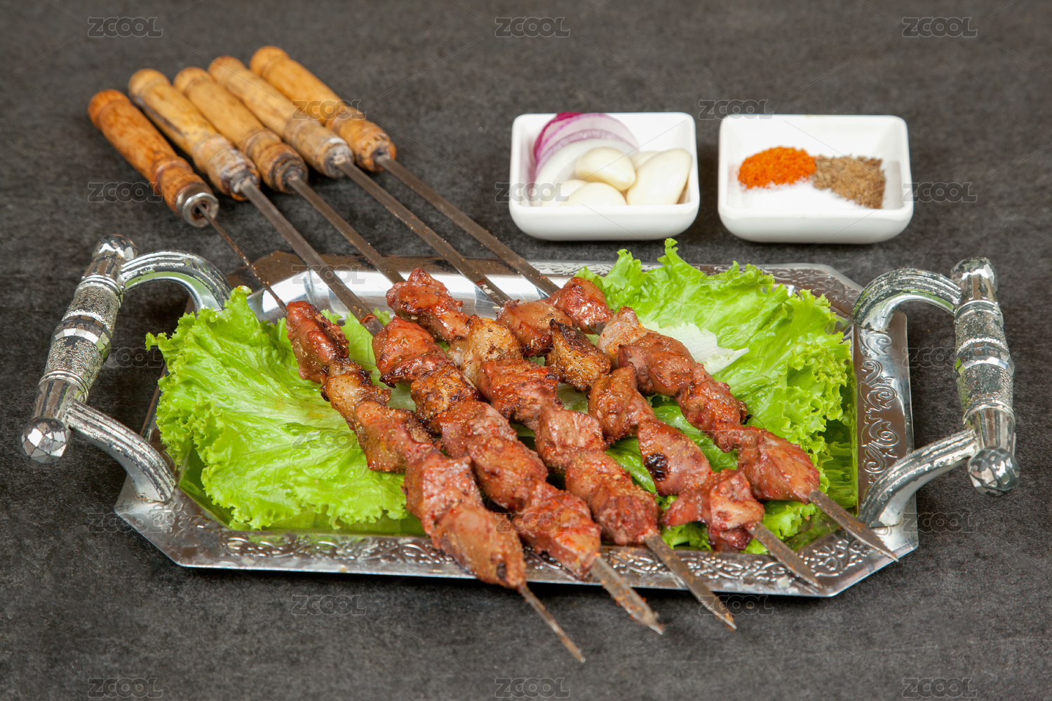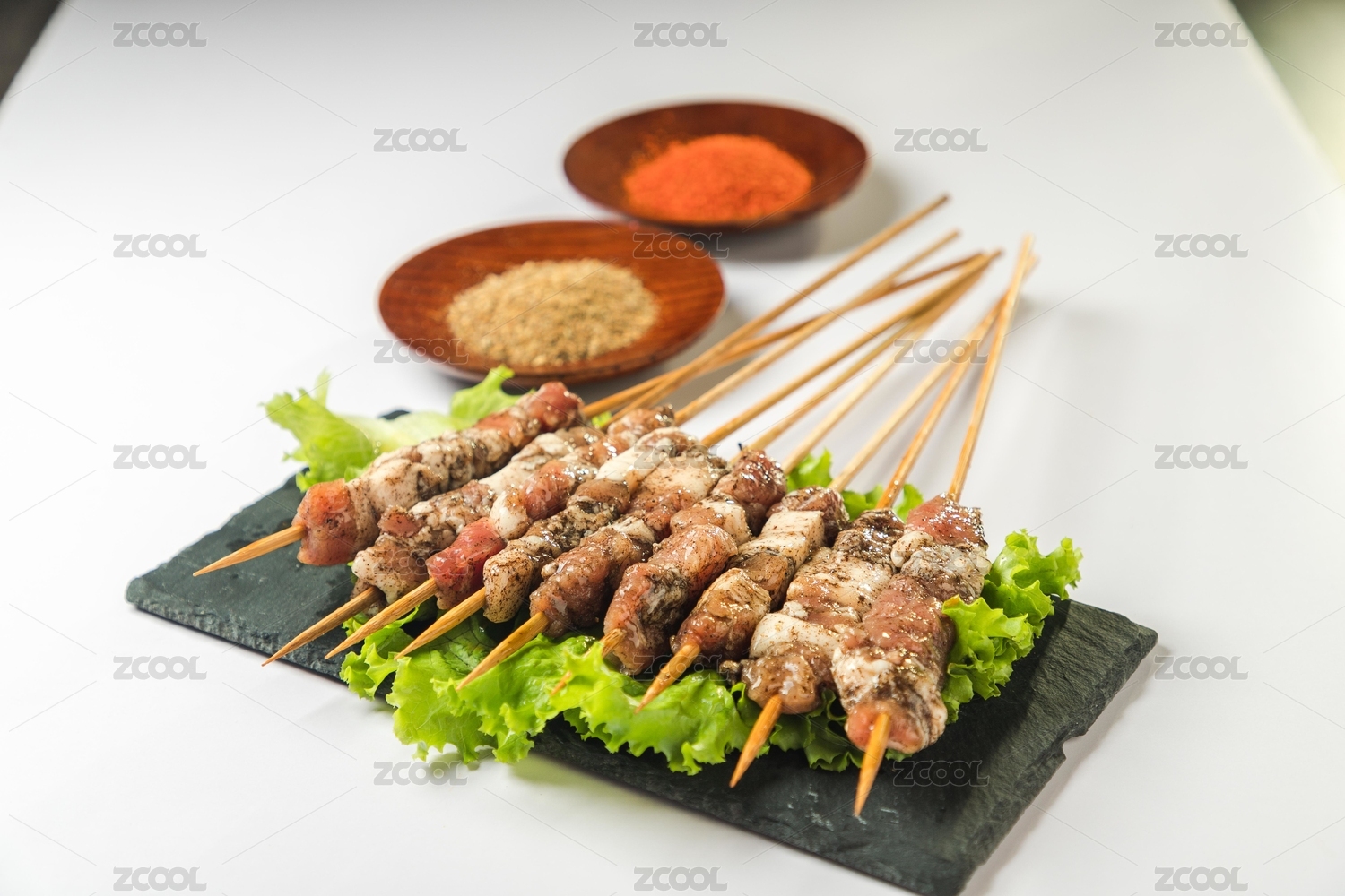 室内黑色桌子上的一盘烧烤鱼豆腐
