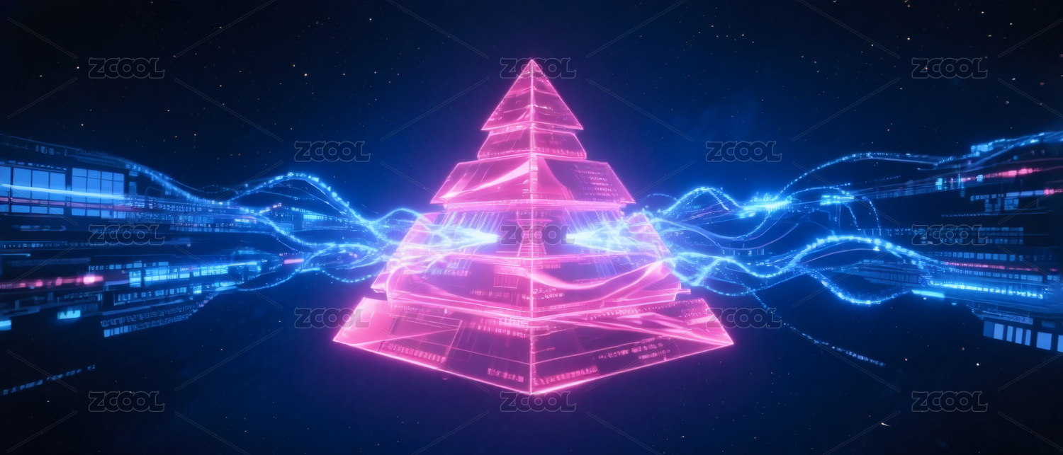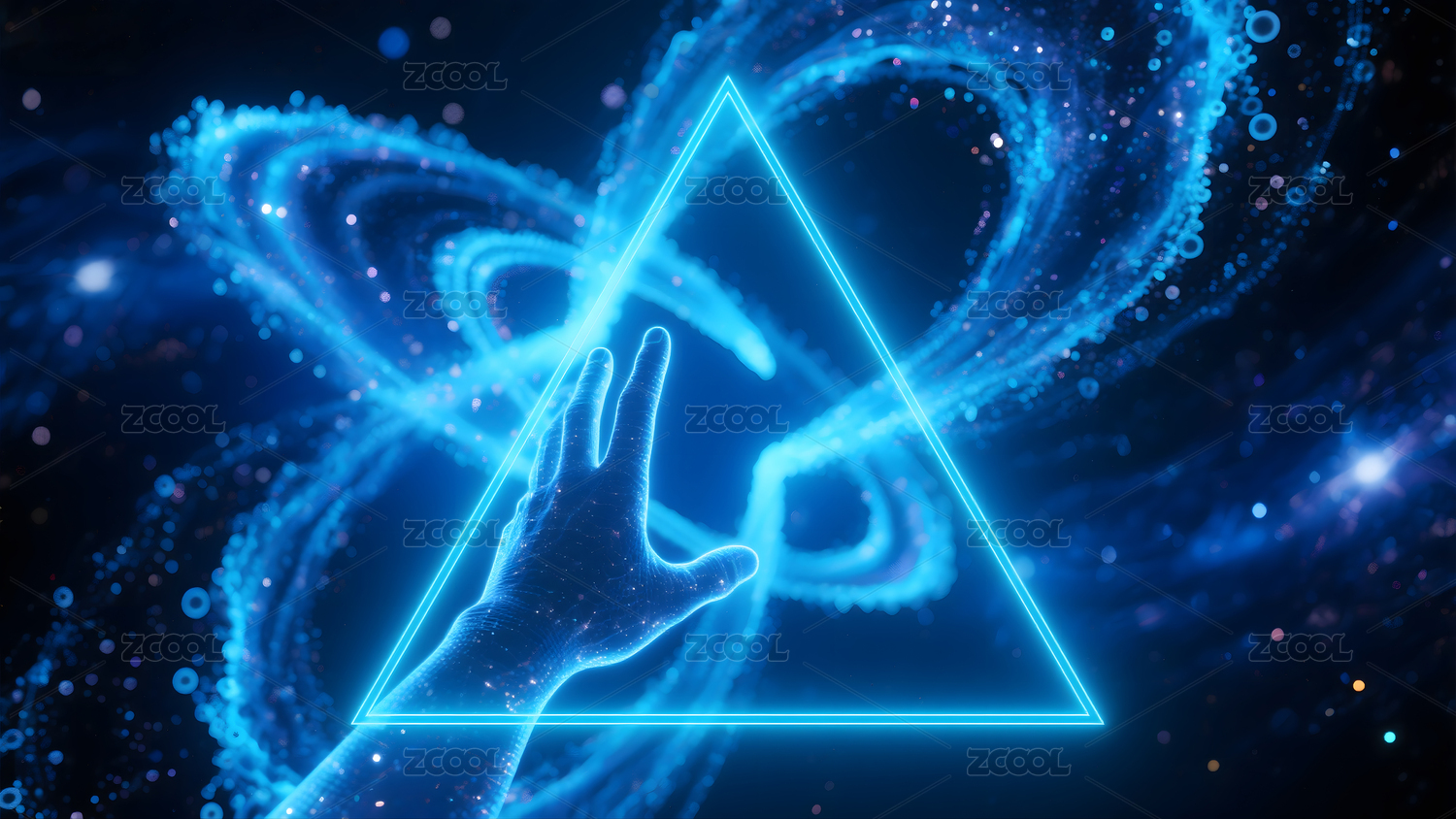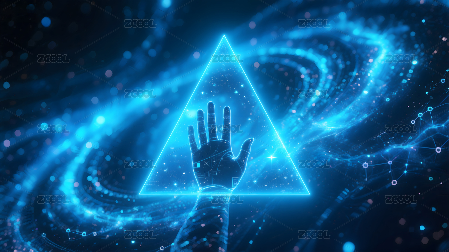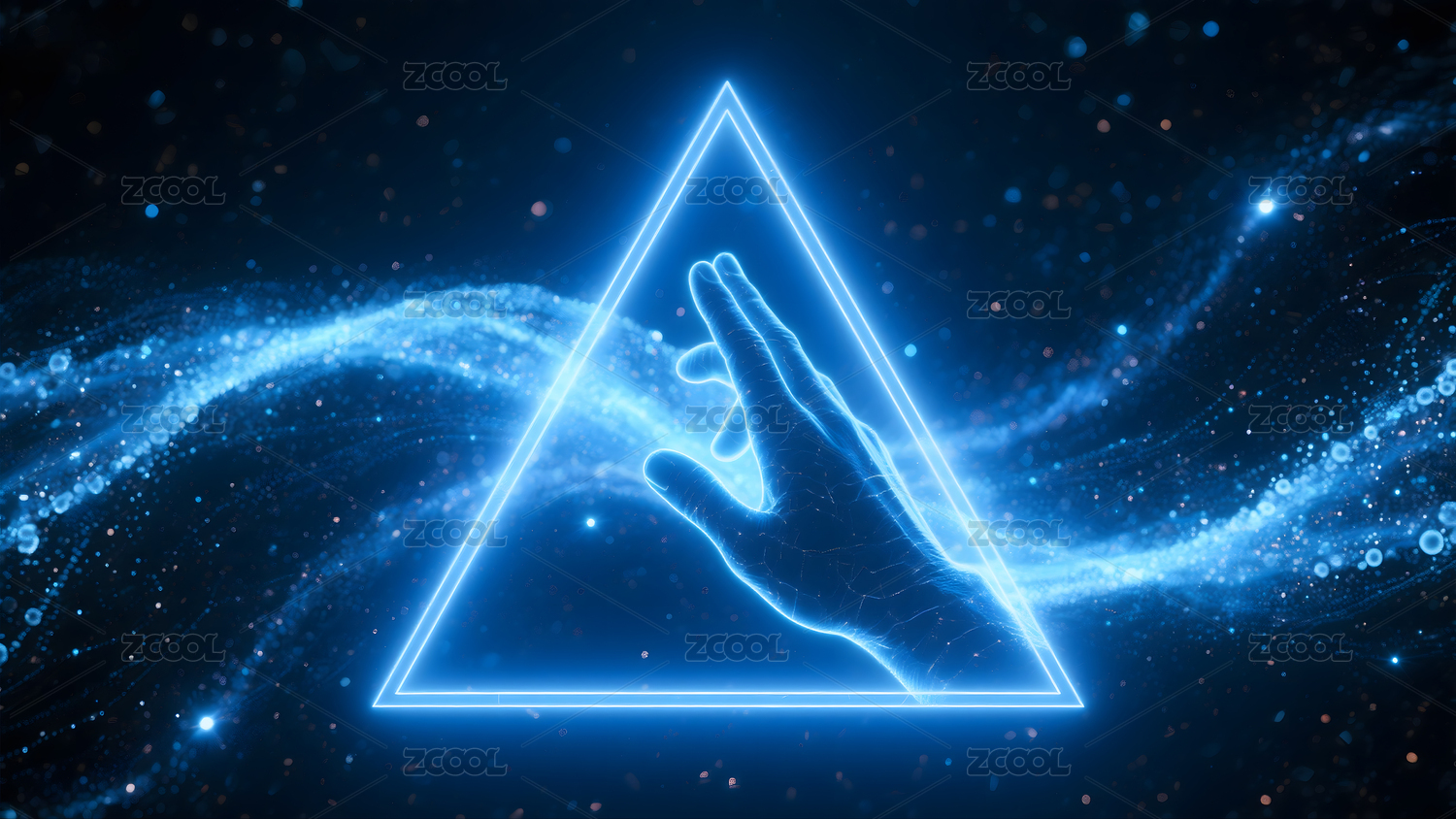 赛博朋克,未来,科技,三角形,能量,机械手,宇宙,星空,发光,霓虹