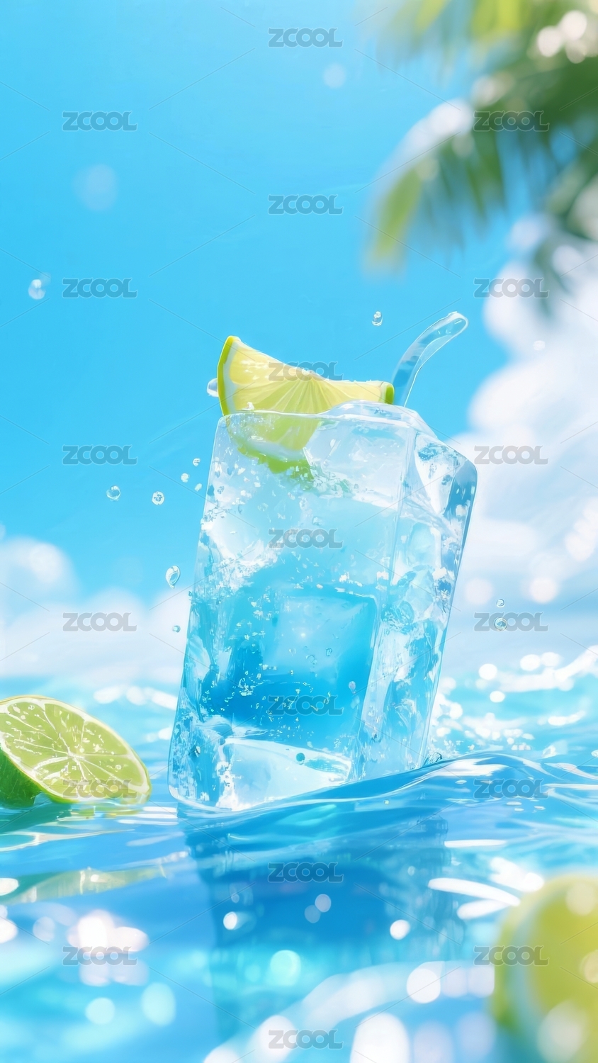 冰块,水花,透明,清凉,饮料,冷饮,玻璃杯,晶莹,飞溅,动态