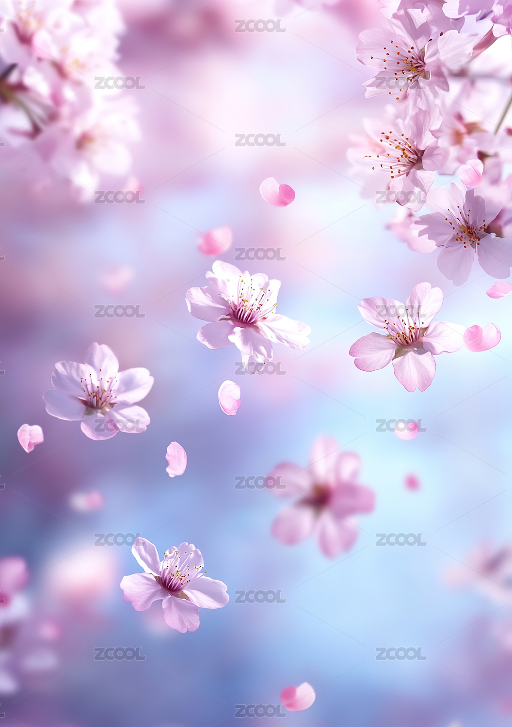 粉色樱花在空中飘落