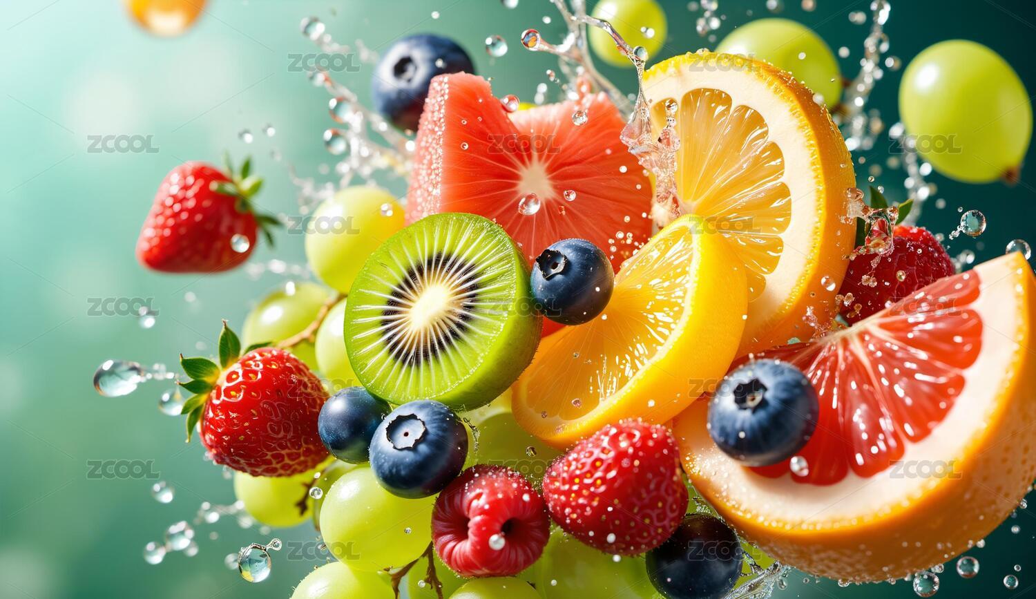 新鲜水果飞溅水花