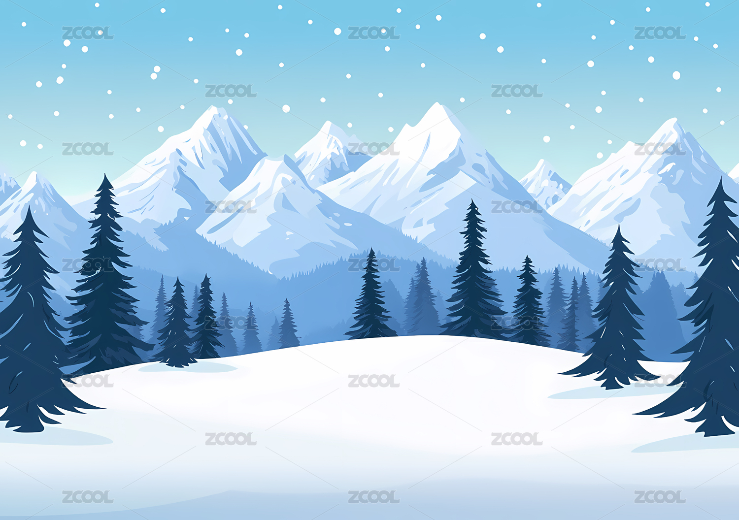 冬天森林雪山下雪唯美插画海报