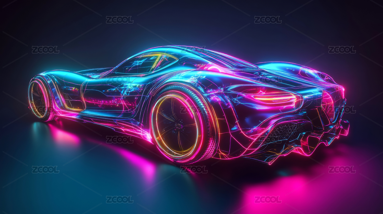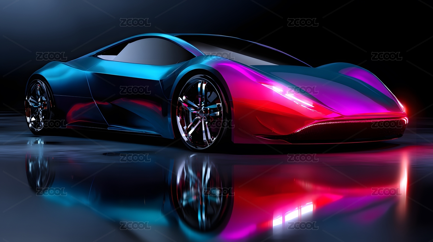 跑车,彩虹色,抽象背景,光泽车身,反光地面