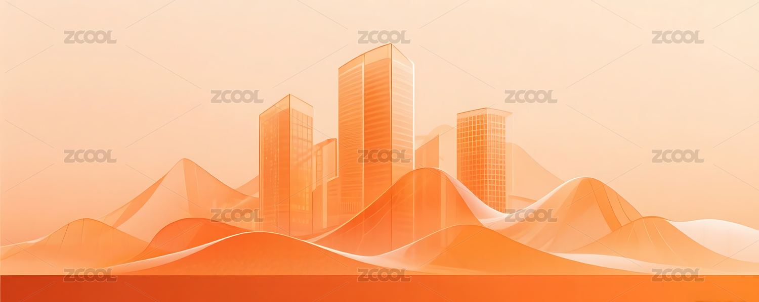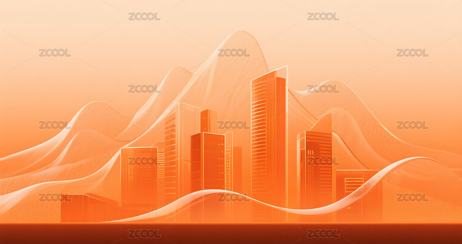 橙色渐变简约半透明城市建筑山峰背景