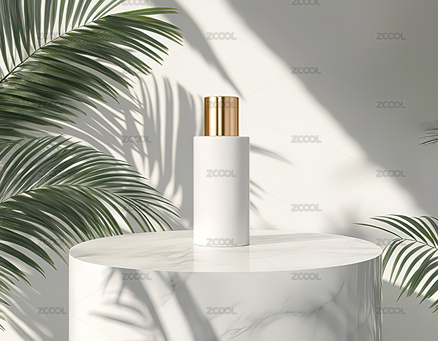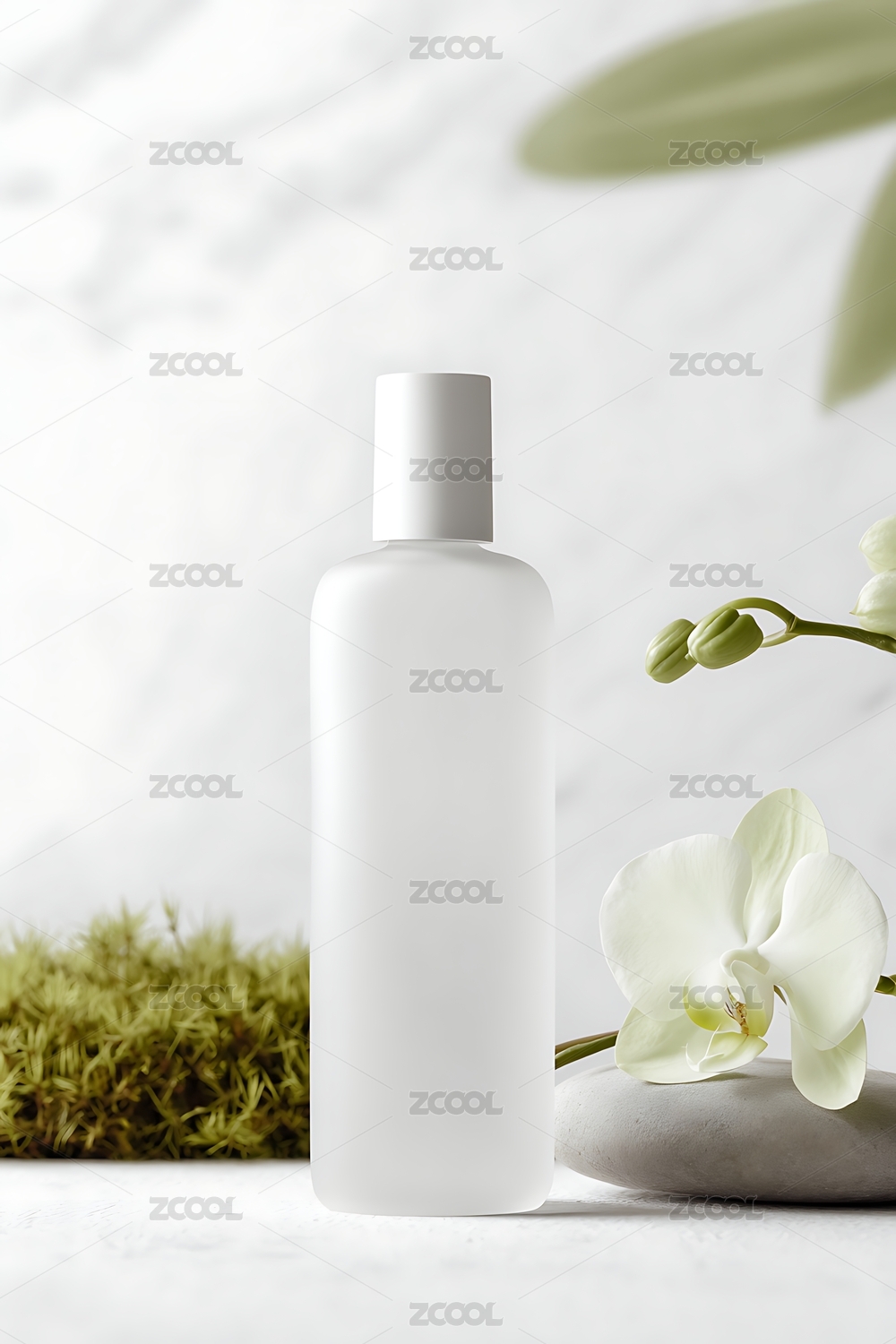 护肤品瓶,绿植,花卉,木质桌面,背景,简约,自然,真实,物品,展示