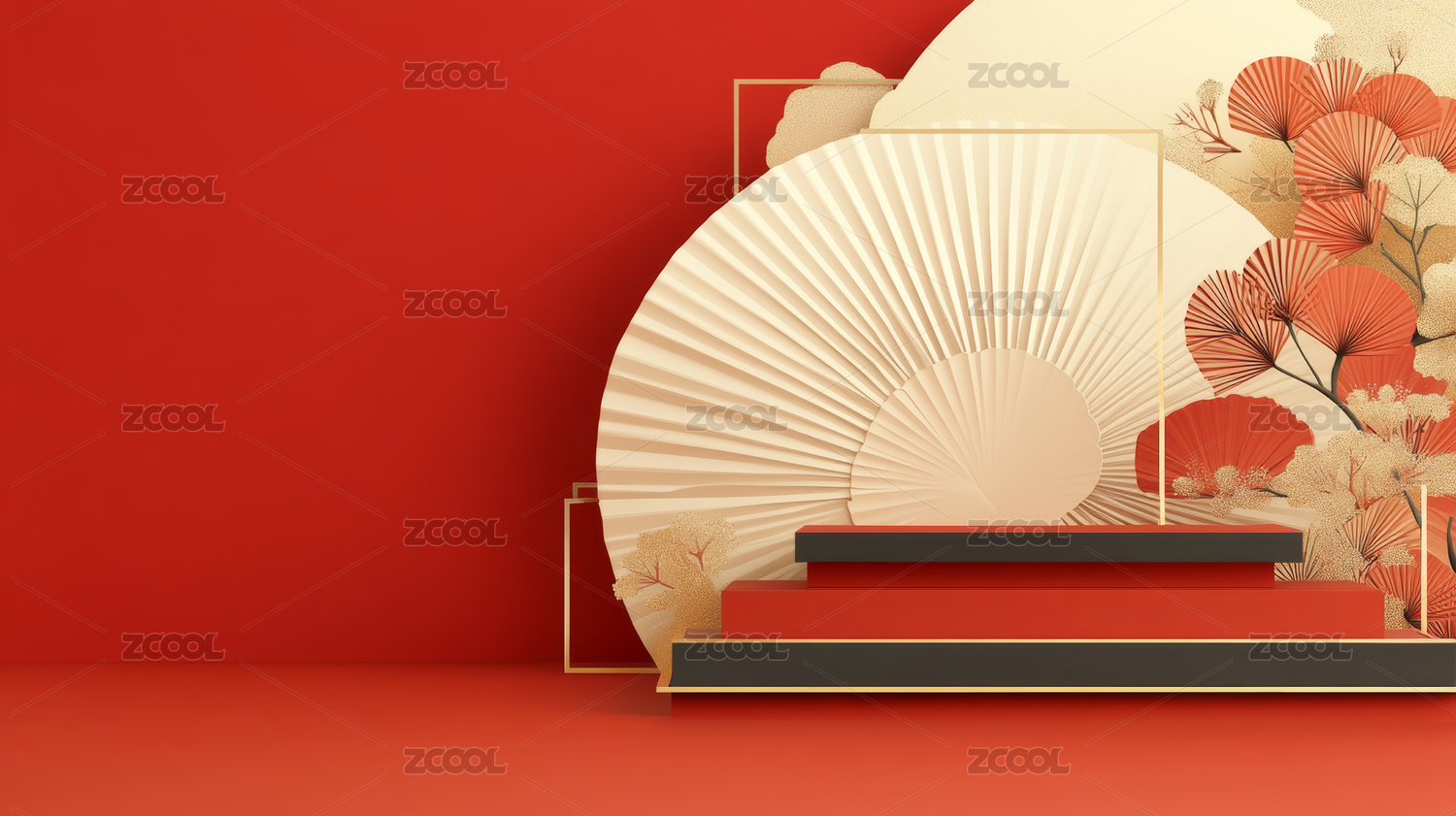 红色背景节日主题电商产品展台