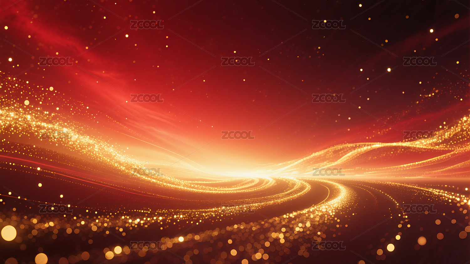 红色背景金色光带闪耀图案