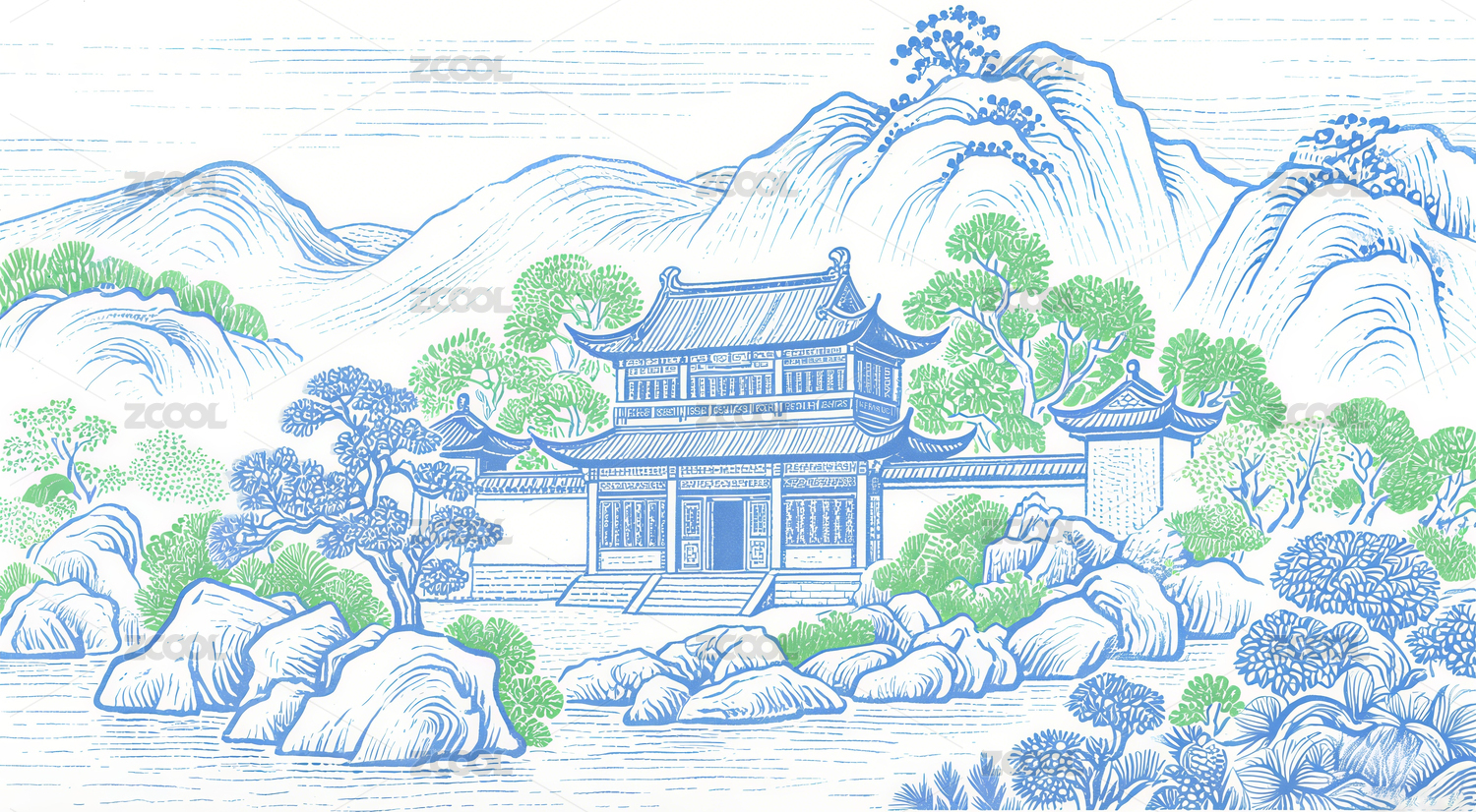 中式山水建筑装饰图案
