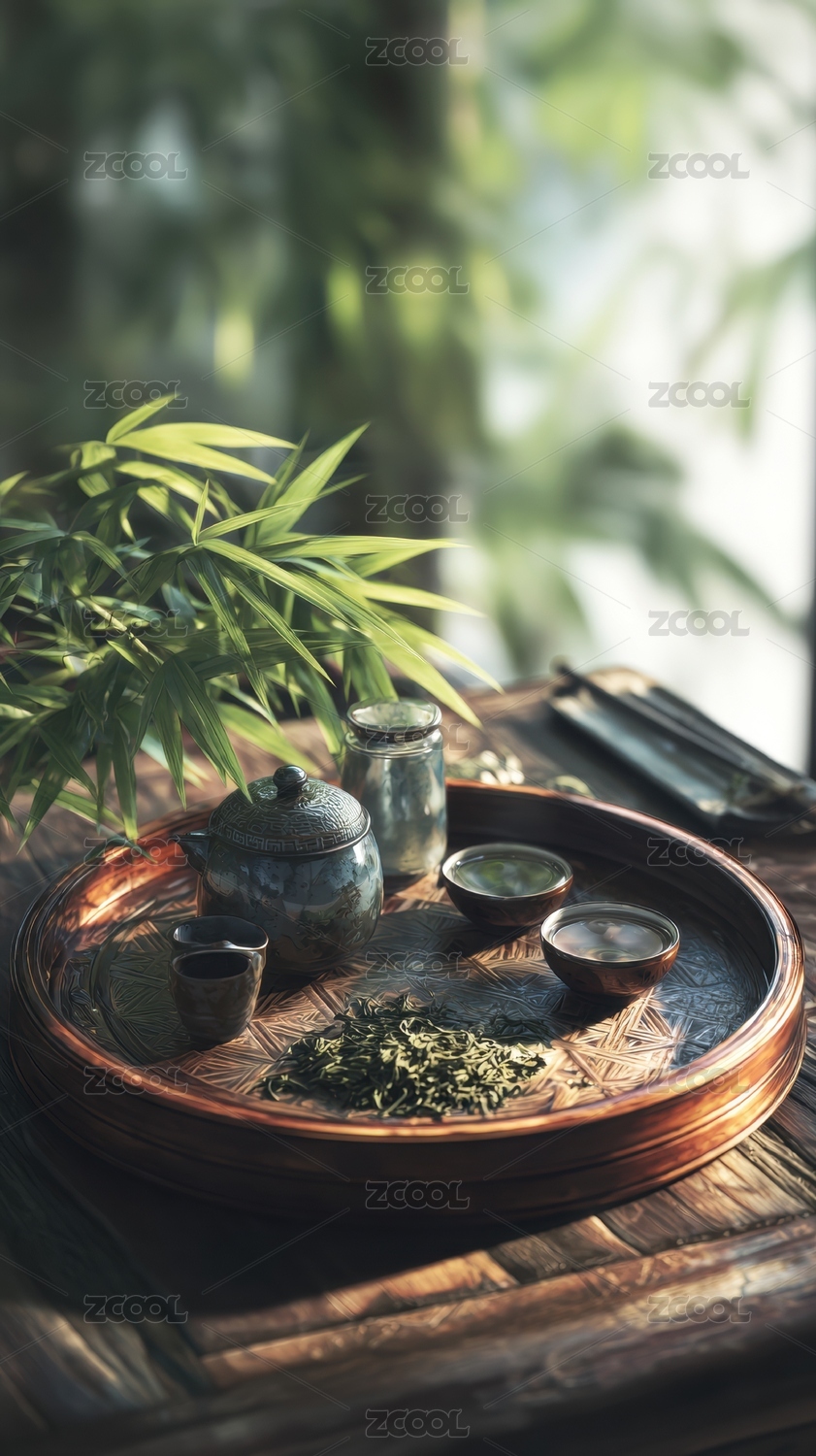茶杯, 茶叶, 烟雾, 阳光, 树影