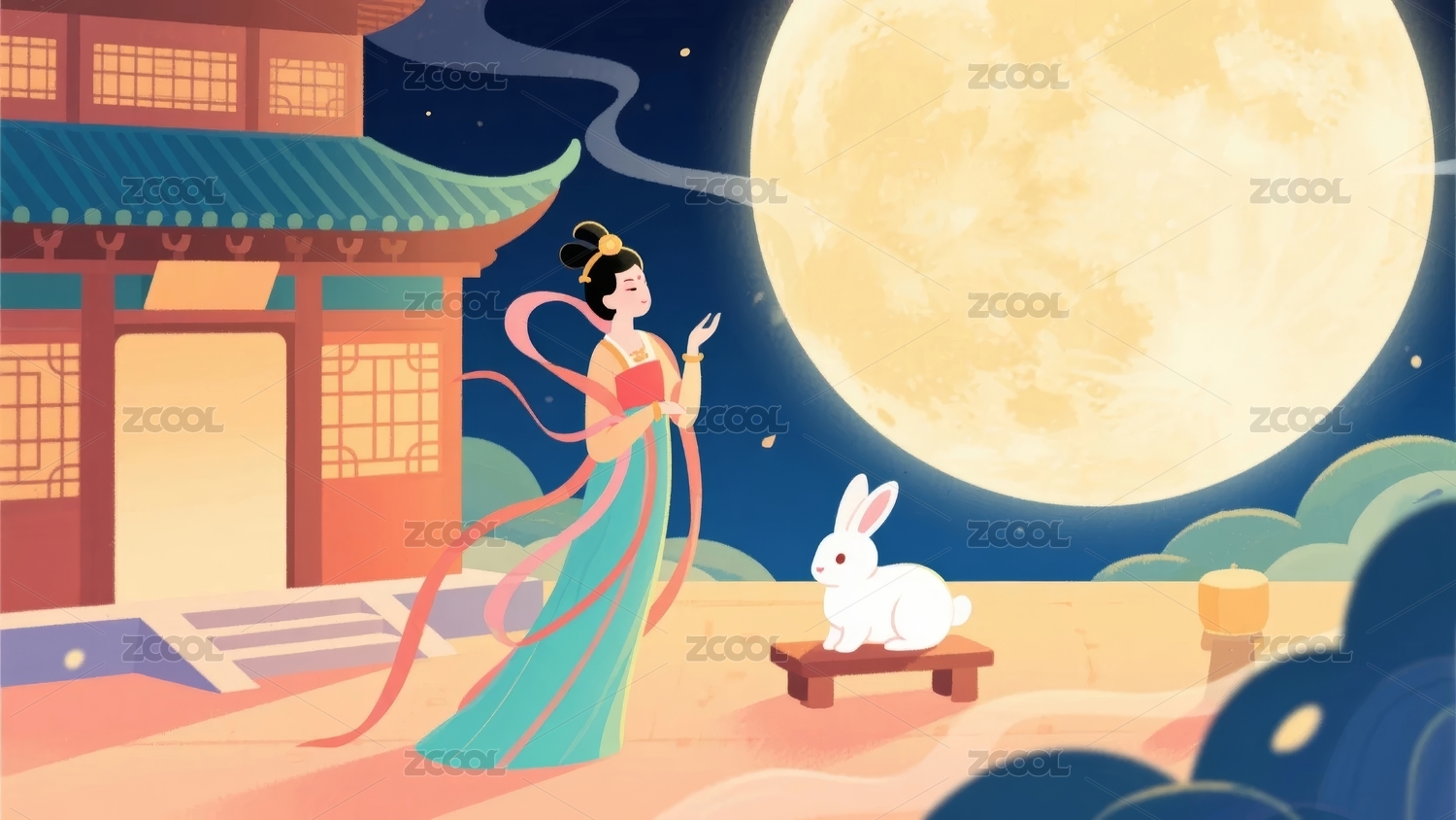 中秋,传统,节日,团圆,神话,插画,插图,佳节,中国风,月宫