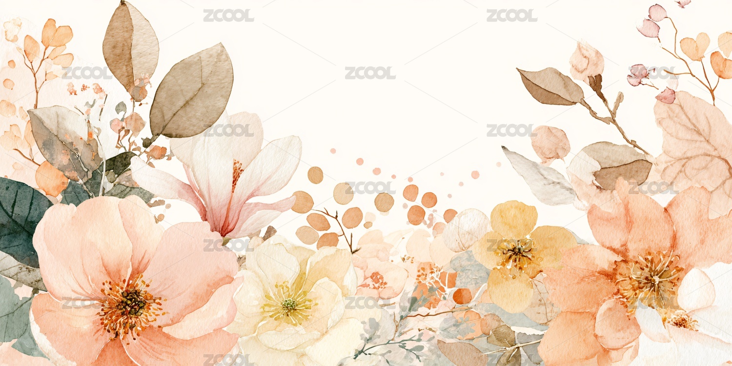 花卉,叶子,插画,背景,花朵,植物,柔和色调,自然,图案,唯美