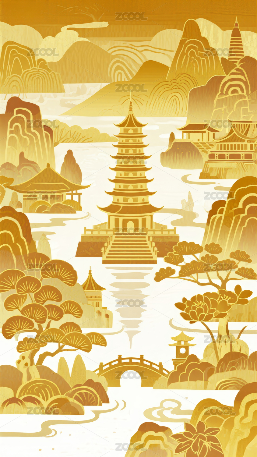 夕阳, 宁静, 传统, 建筑, 文化, 自然, 东方, 艺术, 山峦, 风景