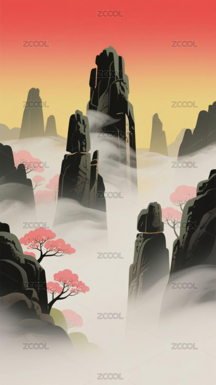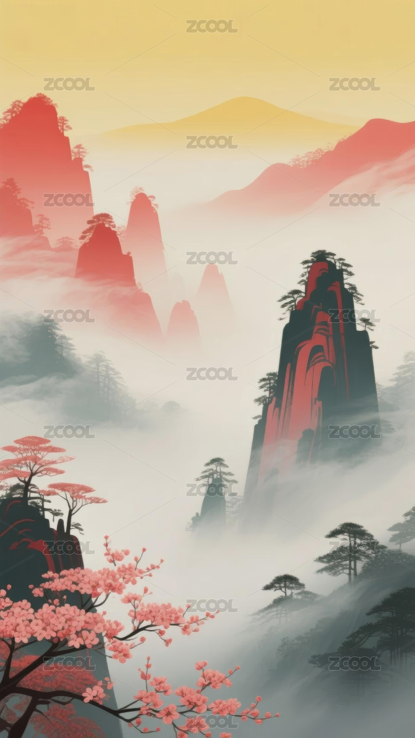 宁静, 传统, 文化, 自然, 东方, 艺术, 树木, 风景, 红色, 美丽