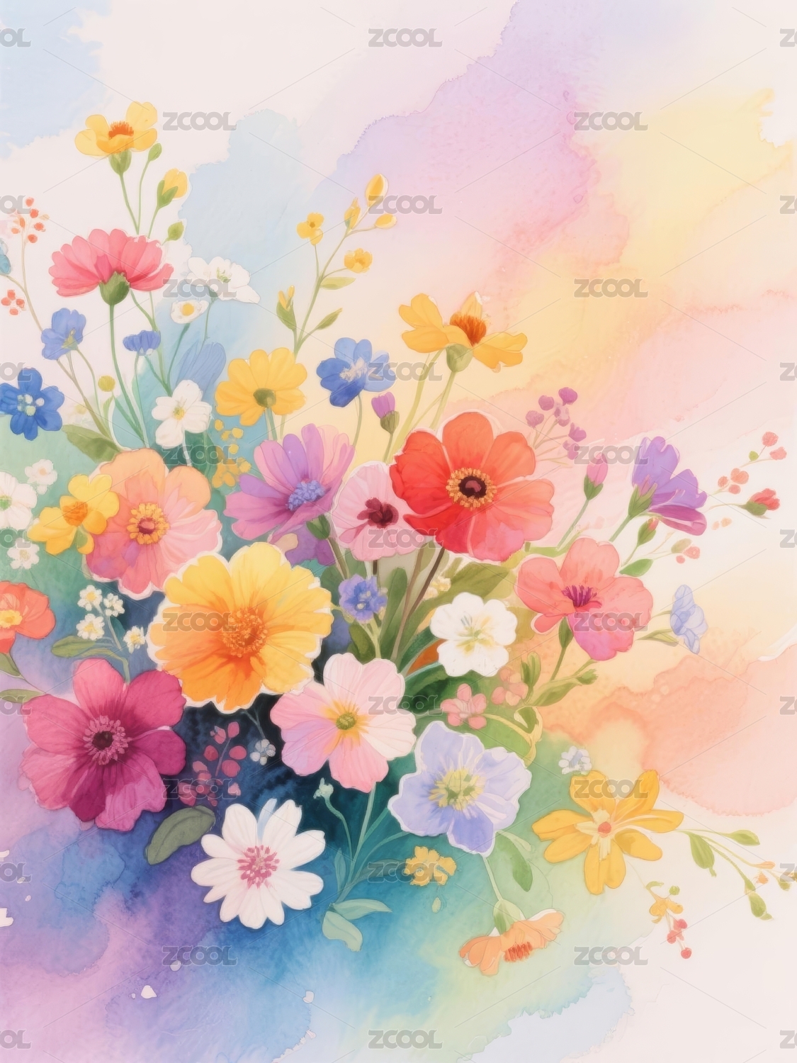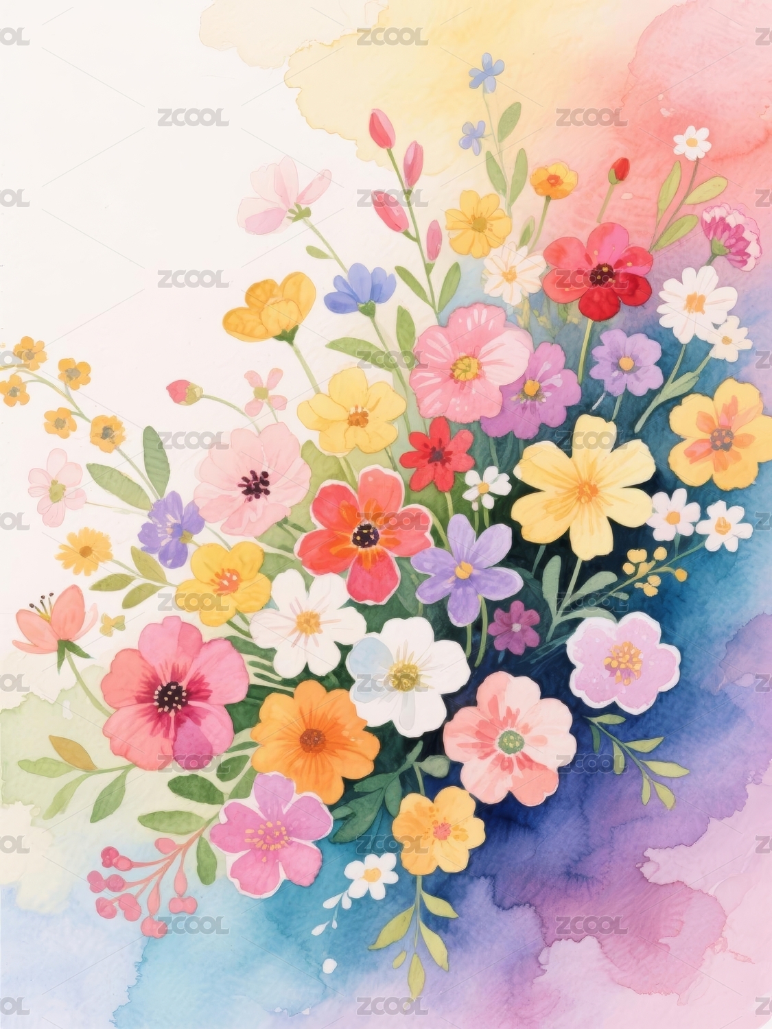 花卉,水彩,插画,图案,叶子,色彩,背景,唯美,清新,自然