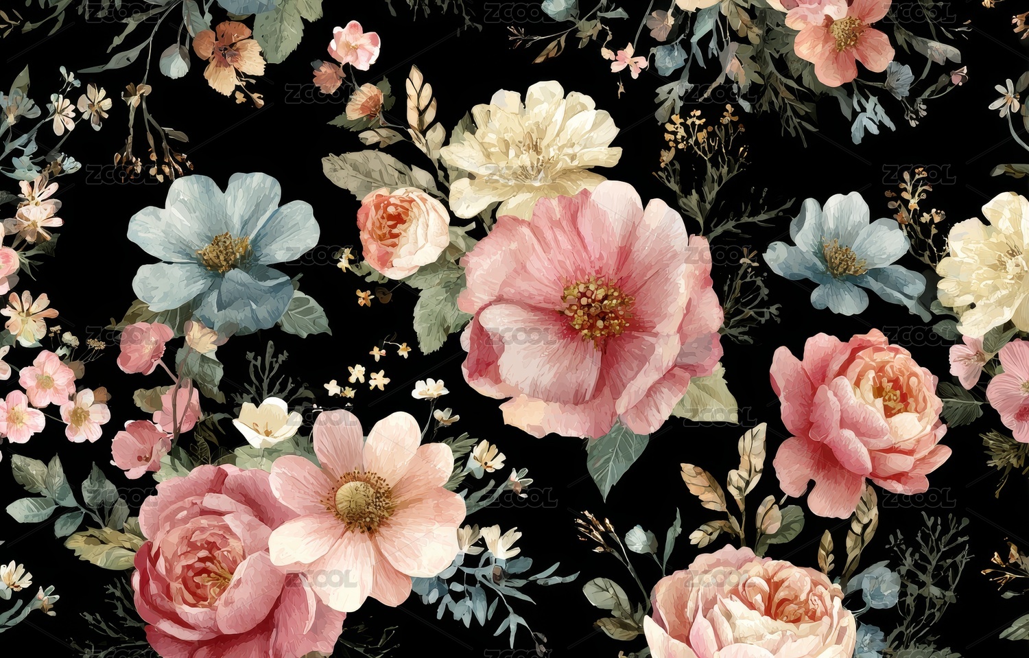 花卉,叶子,插画,图案,植物,花朵,色彩,装饰,背景,艺术