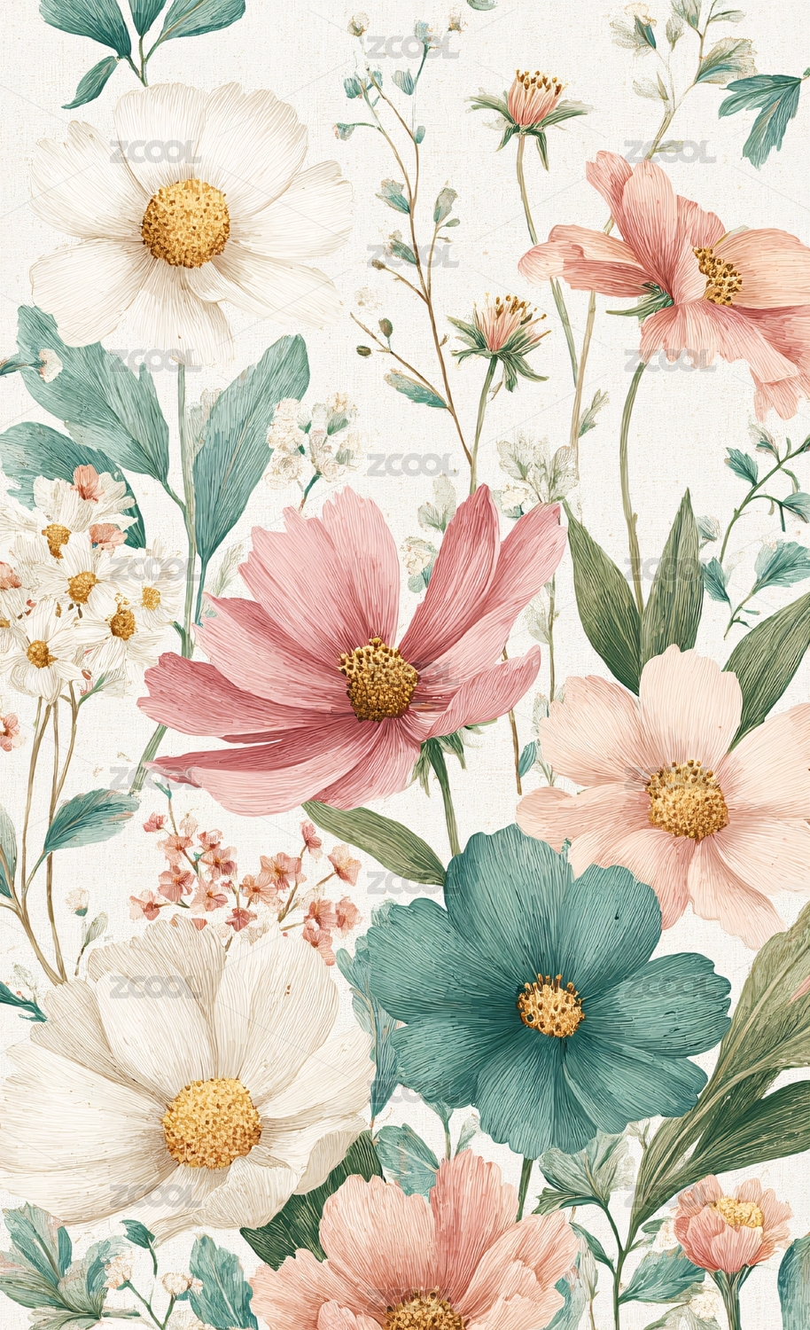 唯美花卉插画图案