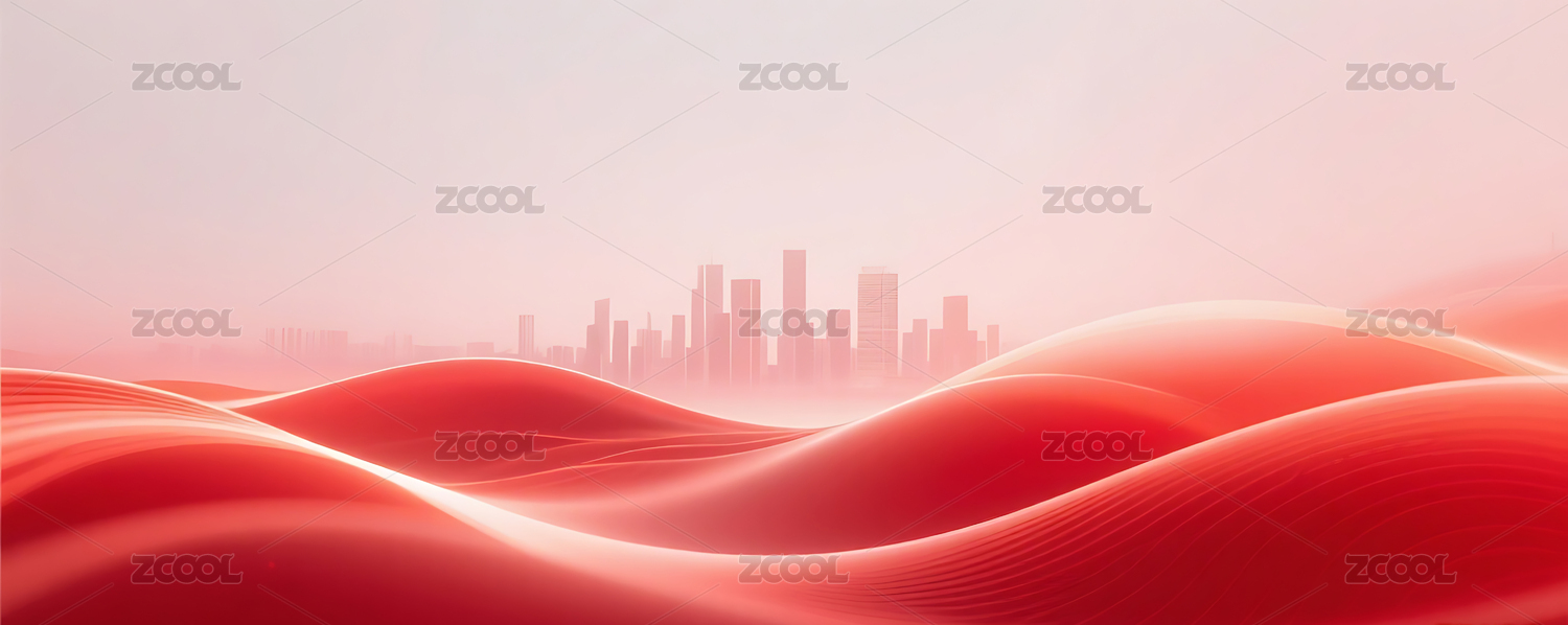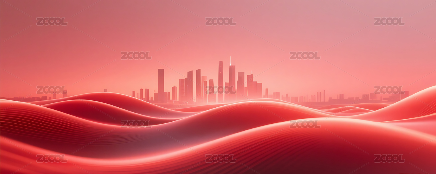 流畅的红金色渐变波浪线条玻璃城市建筑