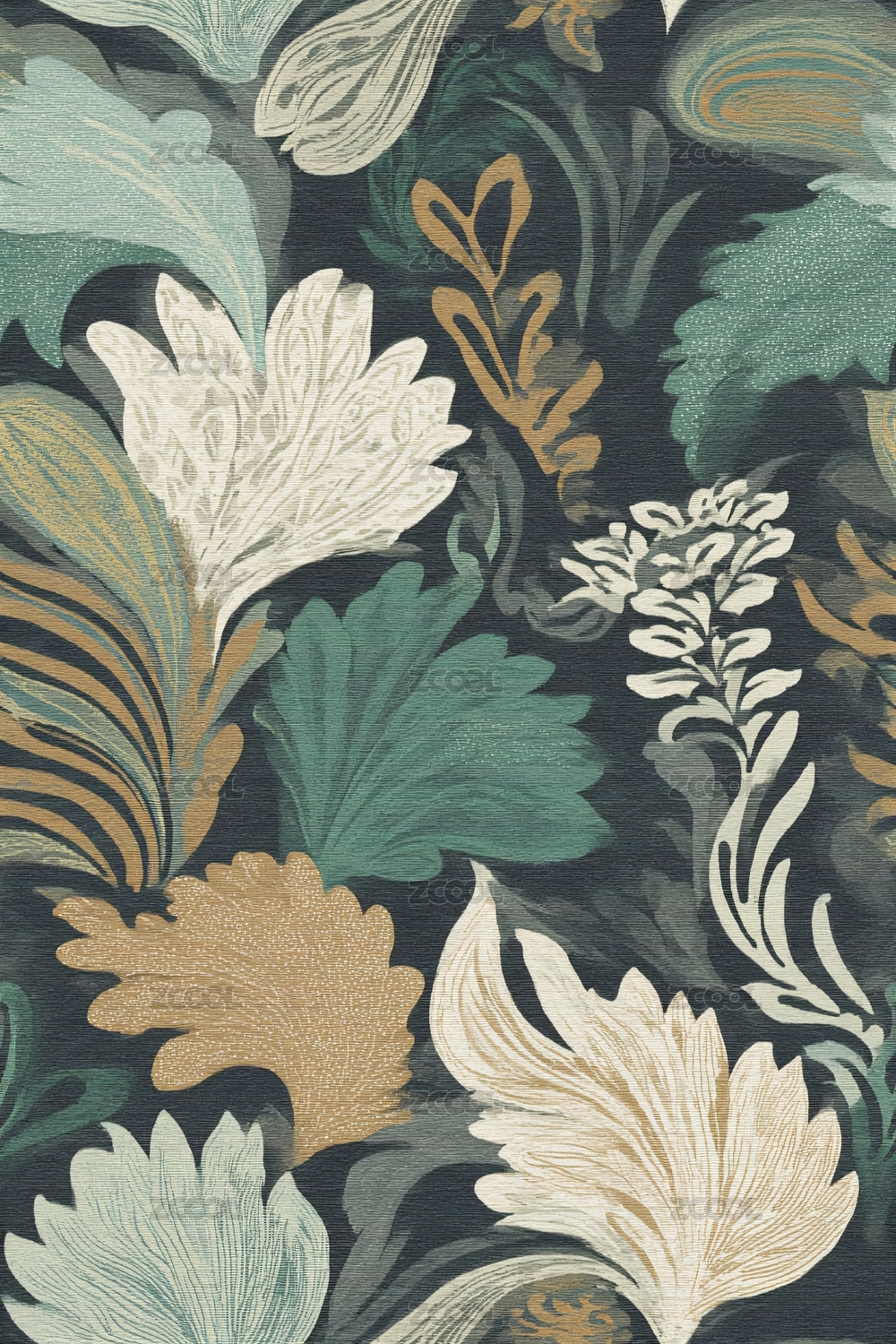 花卉,叶子,插画,图案,背景,装饰,植物,色彩丰富,复古,花纹