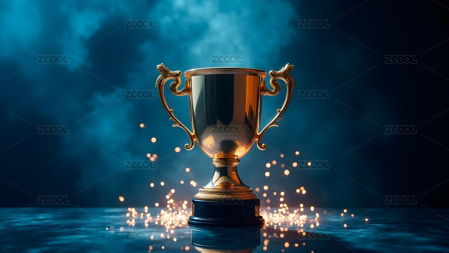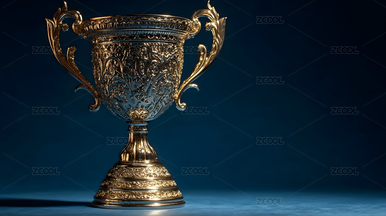 金色奖杯与深蓝背景