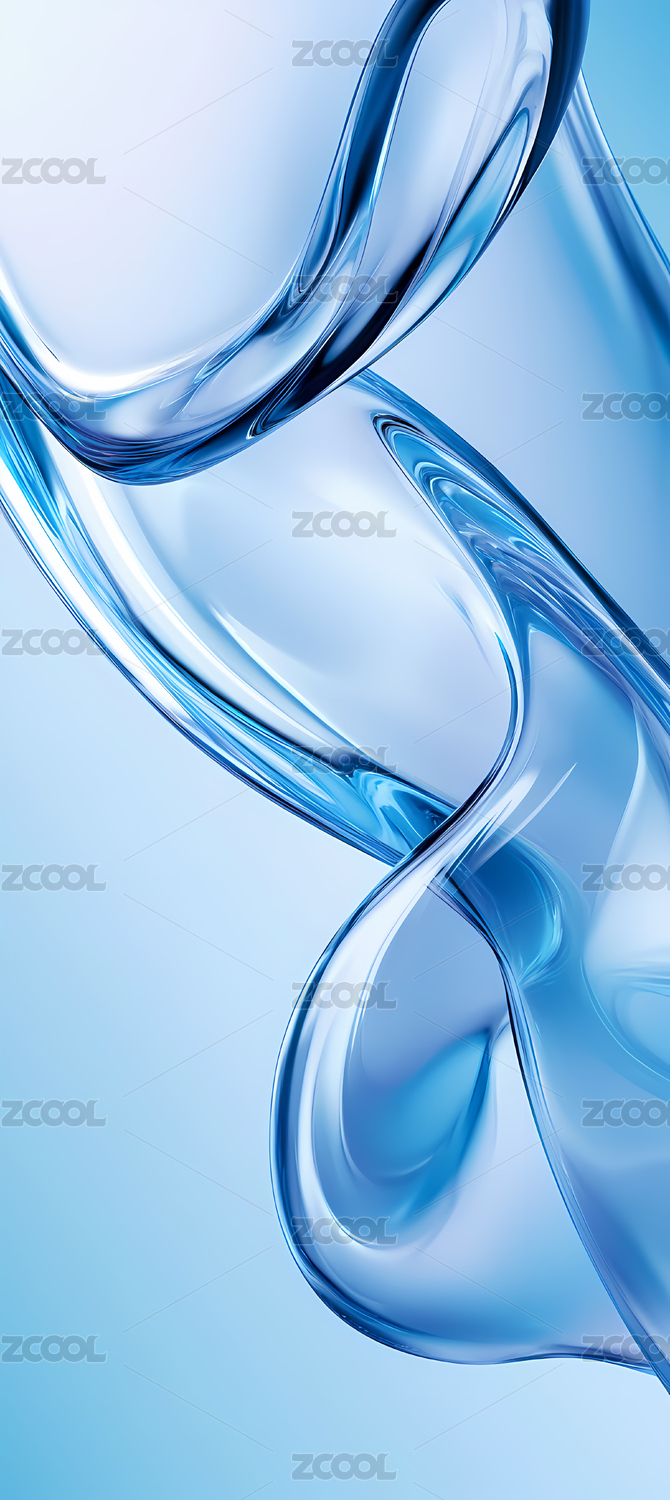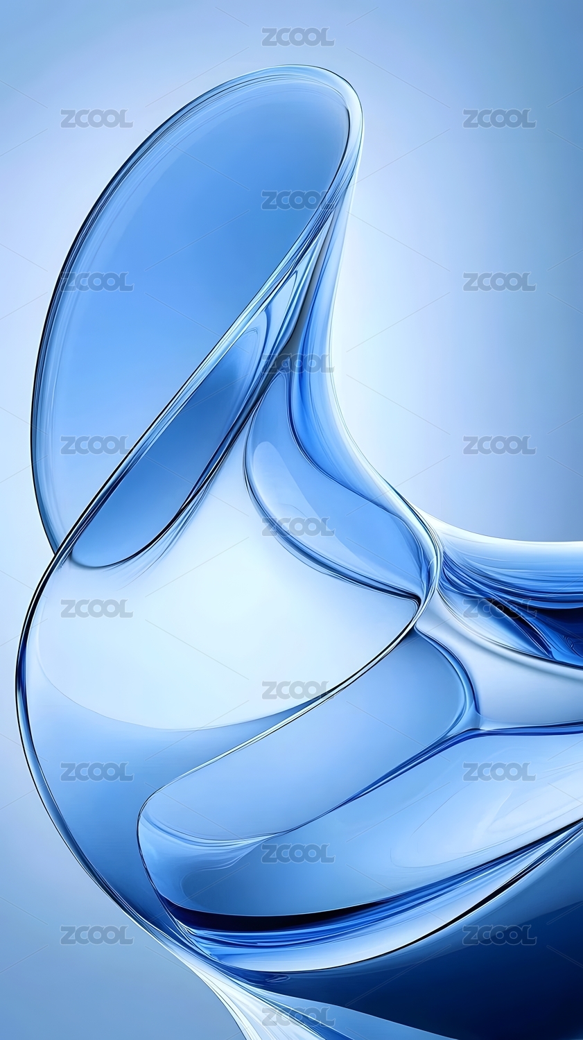 蓝色,曲面,抽象艺术,作品,流畅,透明质感,视觉,设计,现代,创意