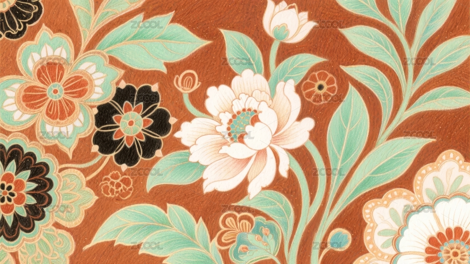花卉,叶子,图案,纹理,背景,中式,插画,装饰,植物,花朵