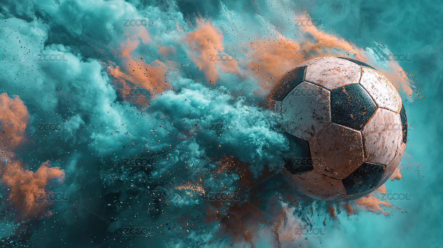 足球碰撞色彩粉末