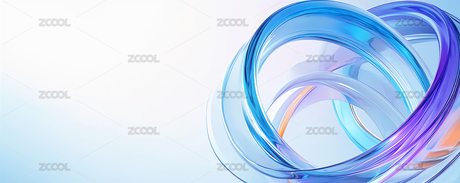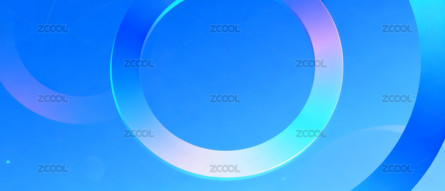 蓝色透明的圆环玻璃特写,干净科技感背景