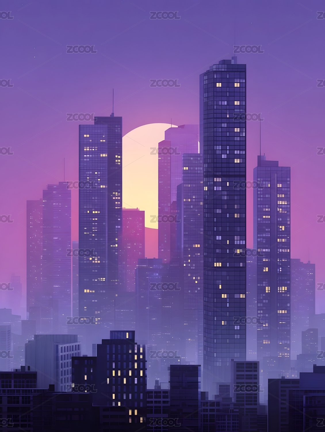 紫色城市月夜