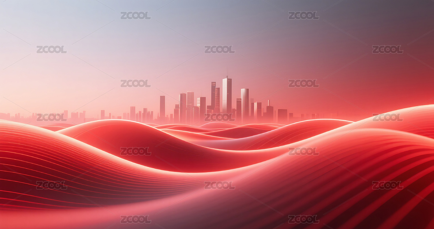 抽象流体流动深邃红色城市建筑背景