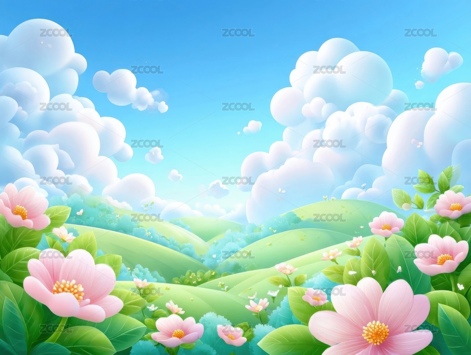 风景,柔和,自然,美丽,云朵,插画,高清,可爱,粉红,春天