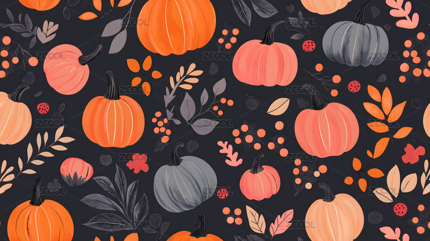 秋季丰收南瓜落叶图案