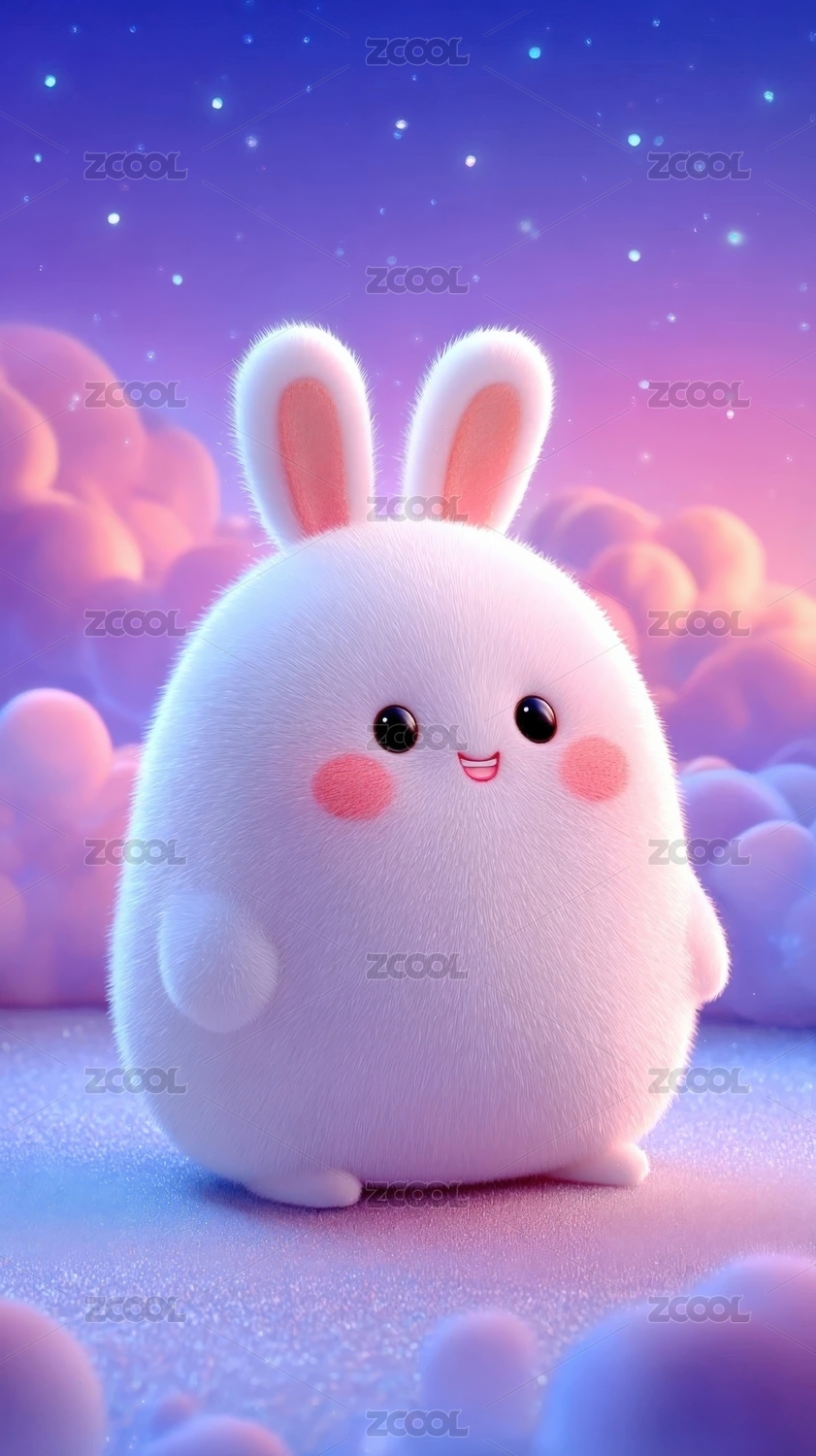 粉色兔子可爱唯美野生动物3D卡通插画壁纸