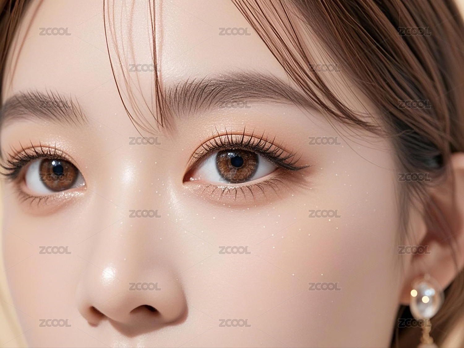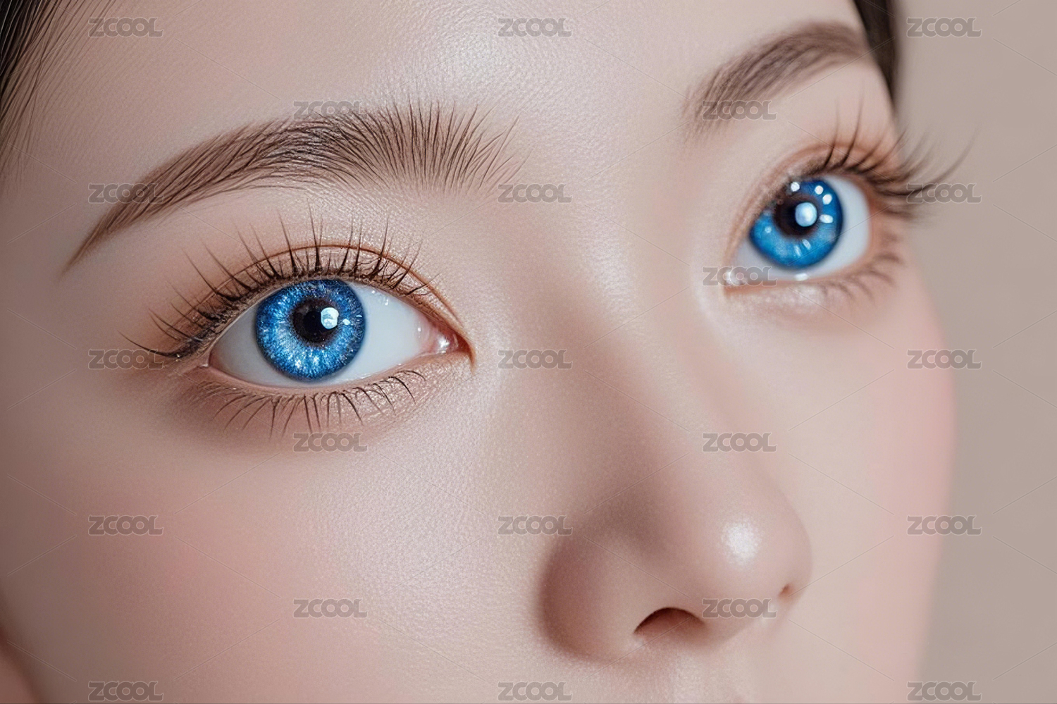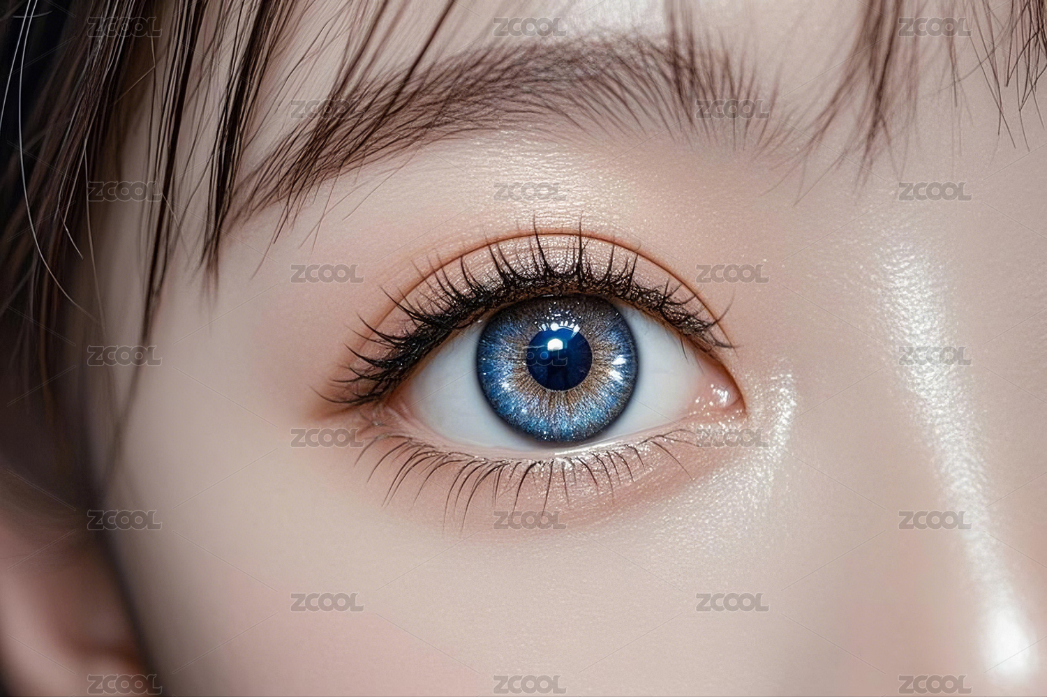 佩戴美瞳眼镜的眼部特写