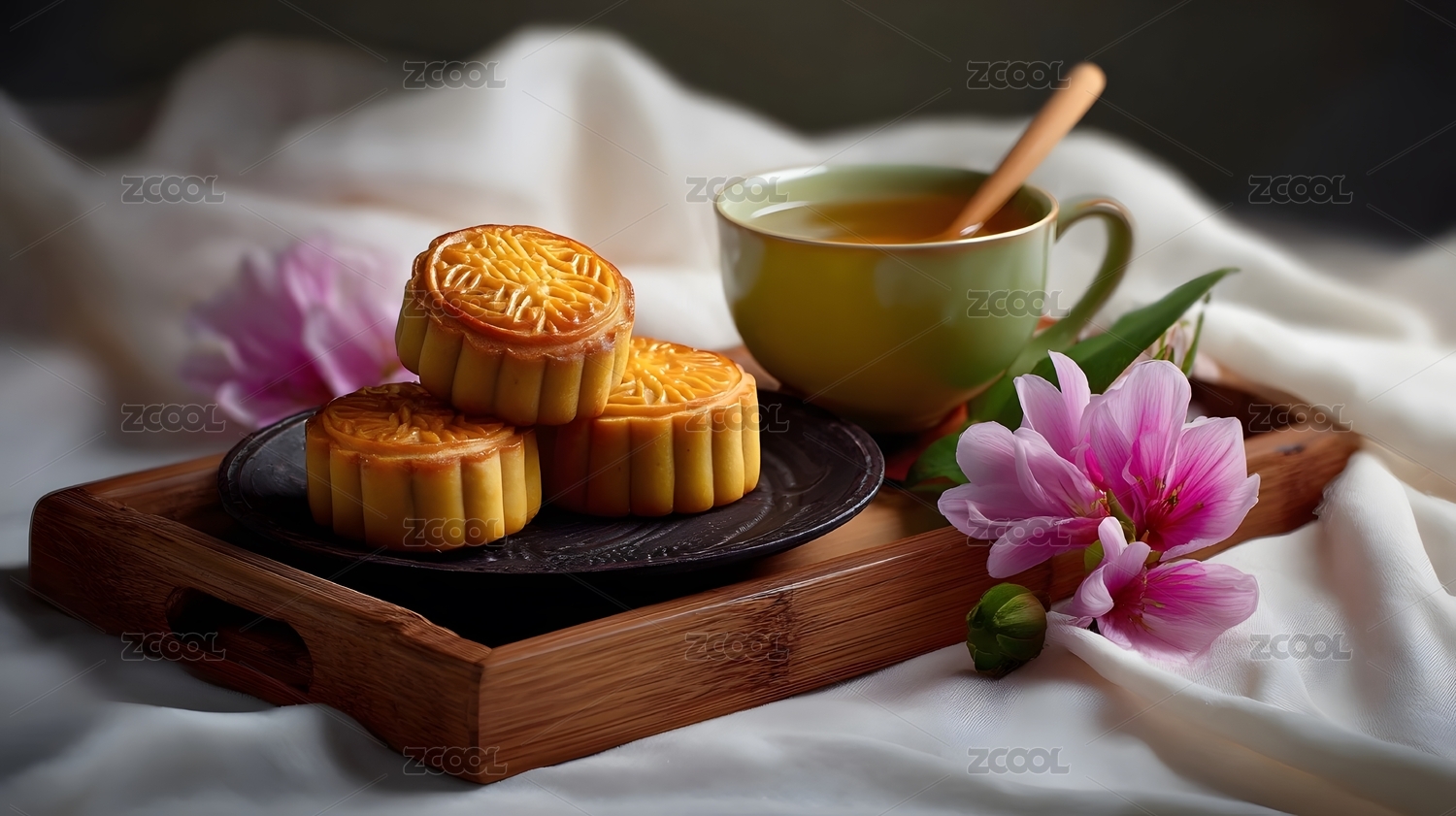月饼,茶杯,食物,茶具,中秋,花纹,桌面,传统,节日,月饼模