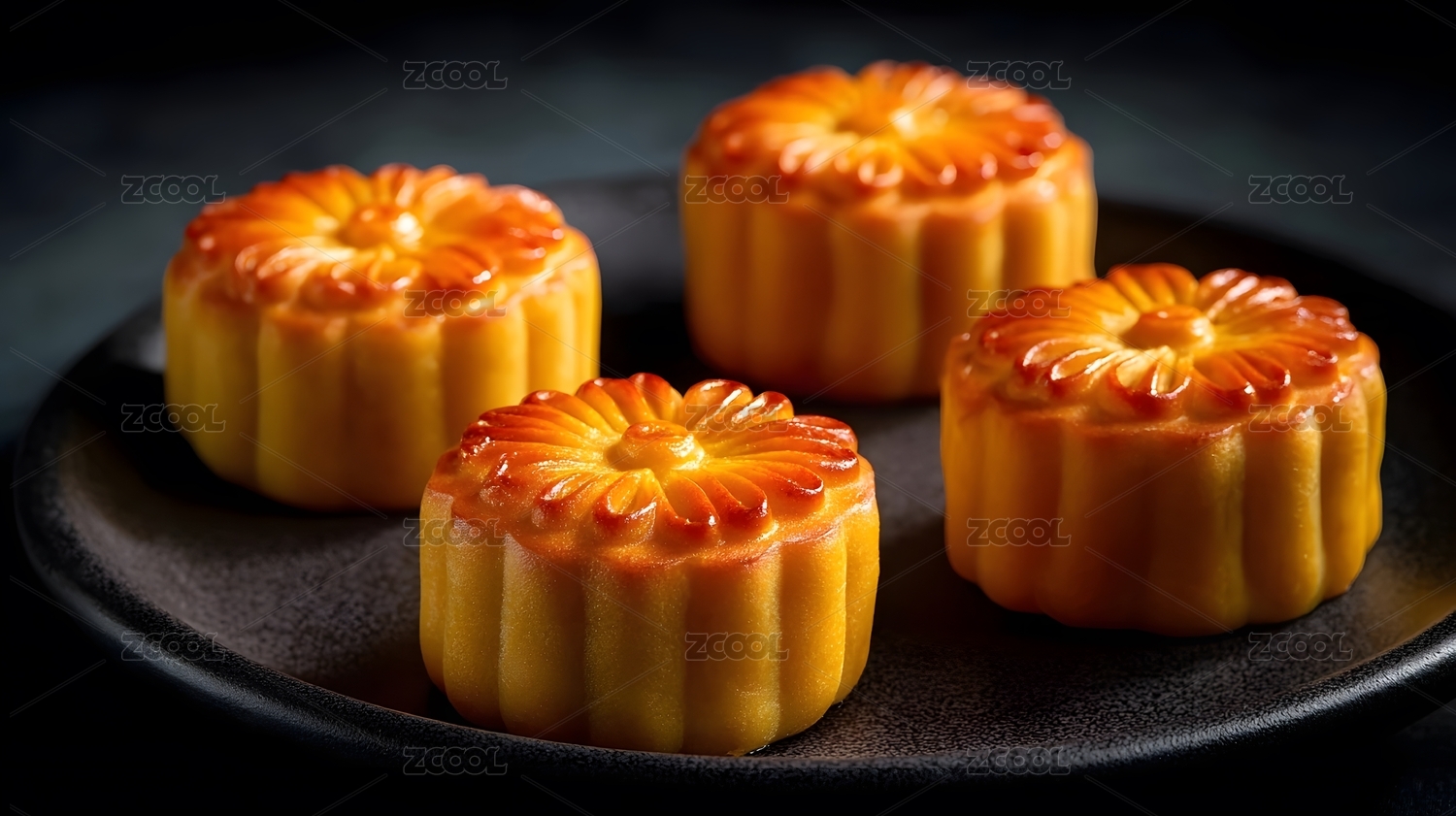 中秋节传统美食月饼摆放在黑色背景上