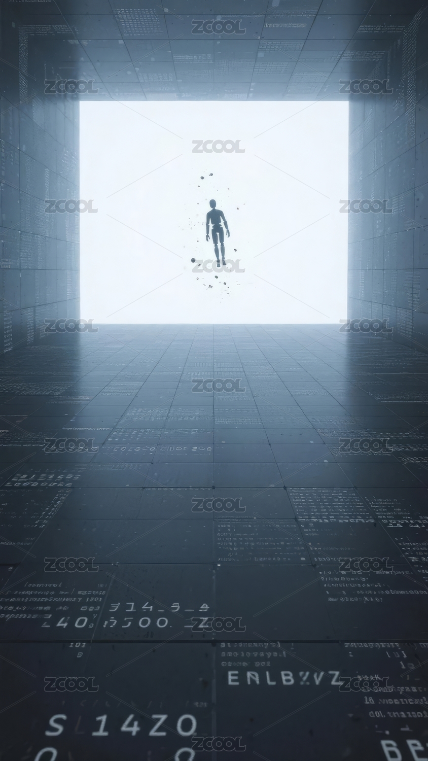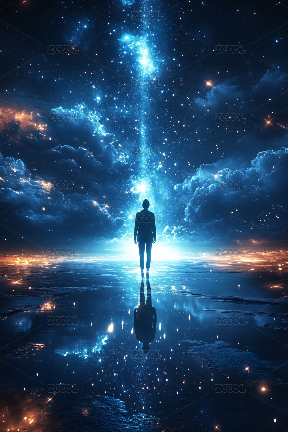 科幻梦境巨大空洞前看太空男人3D立体场景