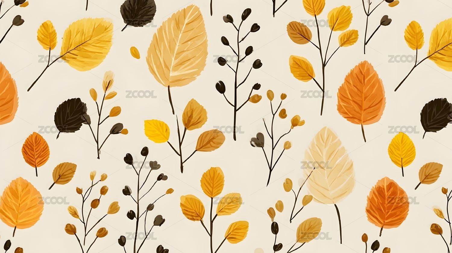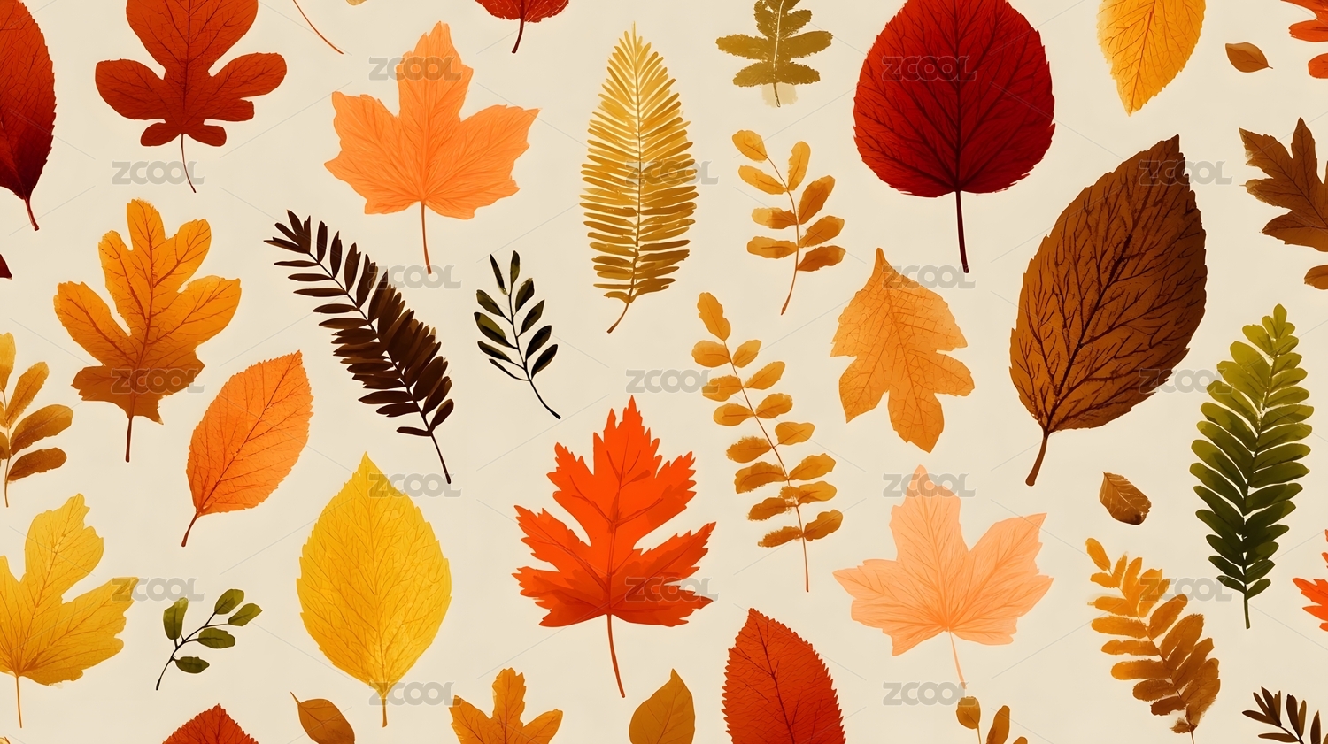 平铺彩色叶子红叶四方连续无缝循环扁平插画